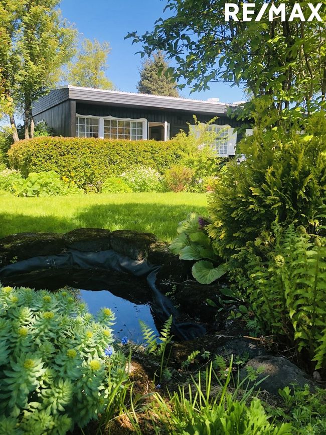 20,0 fm. viðarverönd og bakgarð til norðurs.