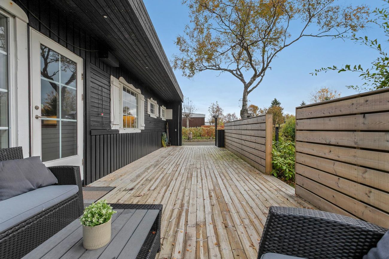 2023: Ný viðarverönd rúmlega 50 fm. smíðuð fyrir framan hús.