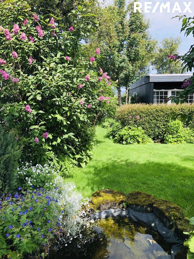 Garðurinn er einstakur með fallegum og fjölbreyttum gróðri. Stærð lóðar alls er 972,0 fm. Falleg aðkoma er að húsinu, hellulagt bílaplan með snjóbræðslu og hleðslustöð fyrir rafmagnsbíl.