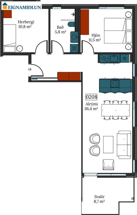 | 2 | 59,10 m² | 51.500.000 kr. 20. mars 2024 | 51.500.000 kr. 23. janúar 2024 |