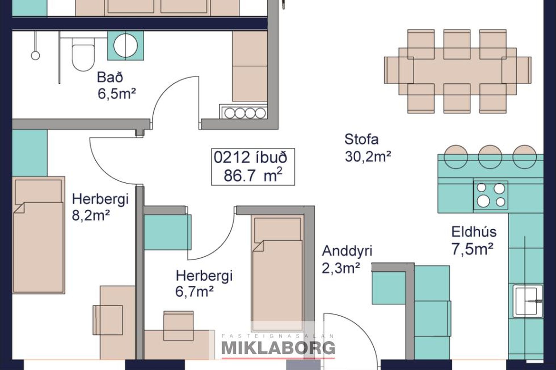 | 3 | 81,20 m² | 66.900.000 kr. 12. febrúar 2026 | 65.300.000 kr. 18. mars 2026 |