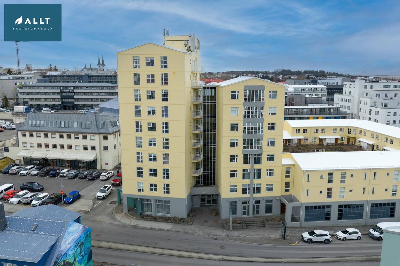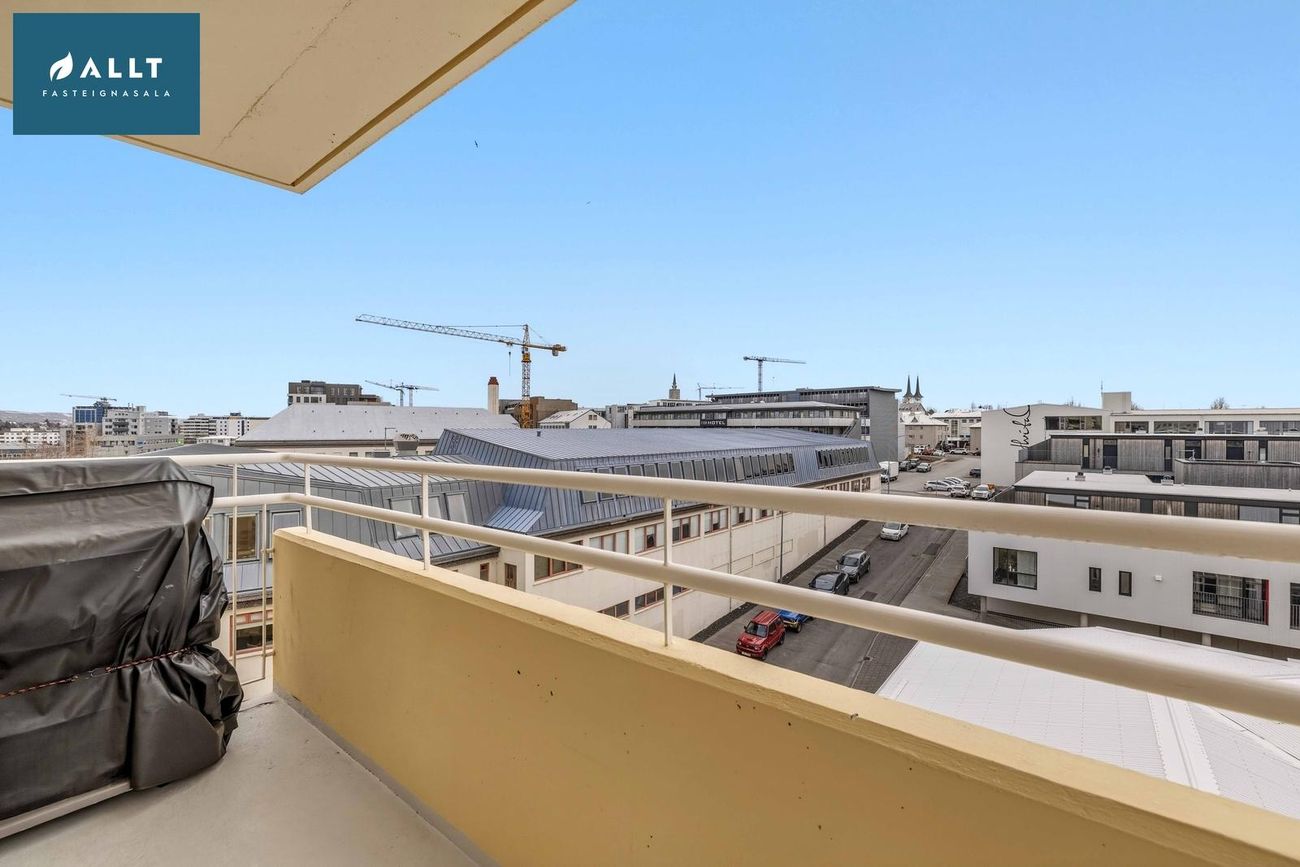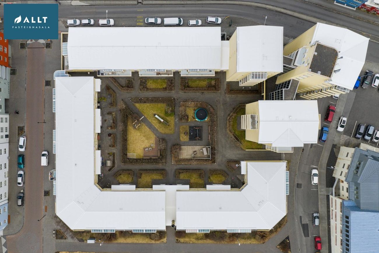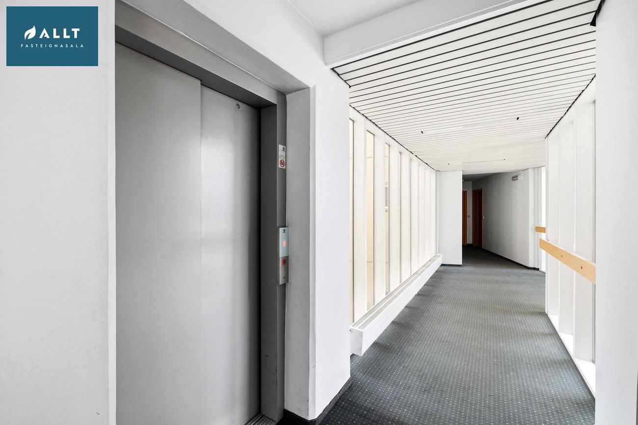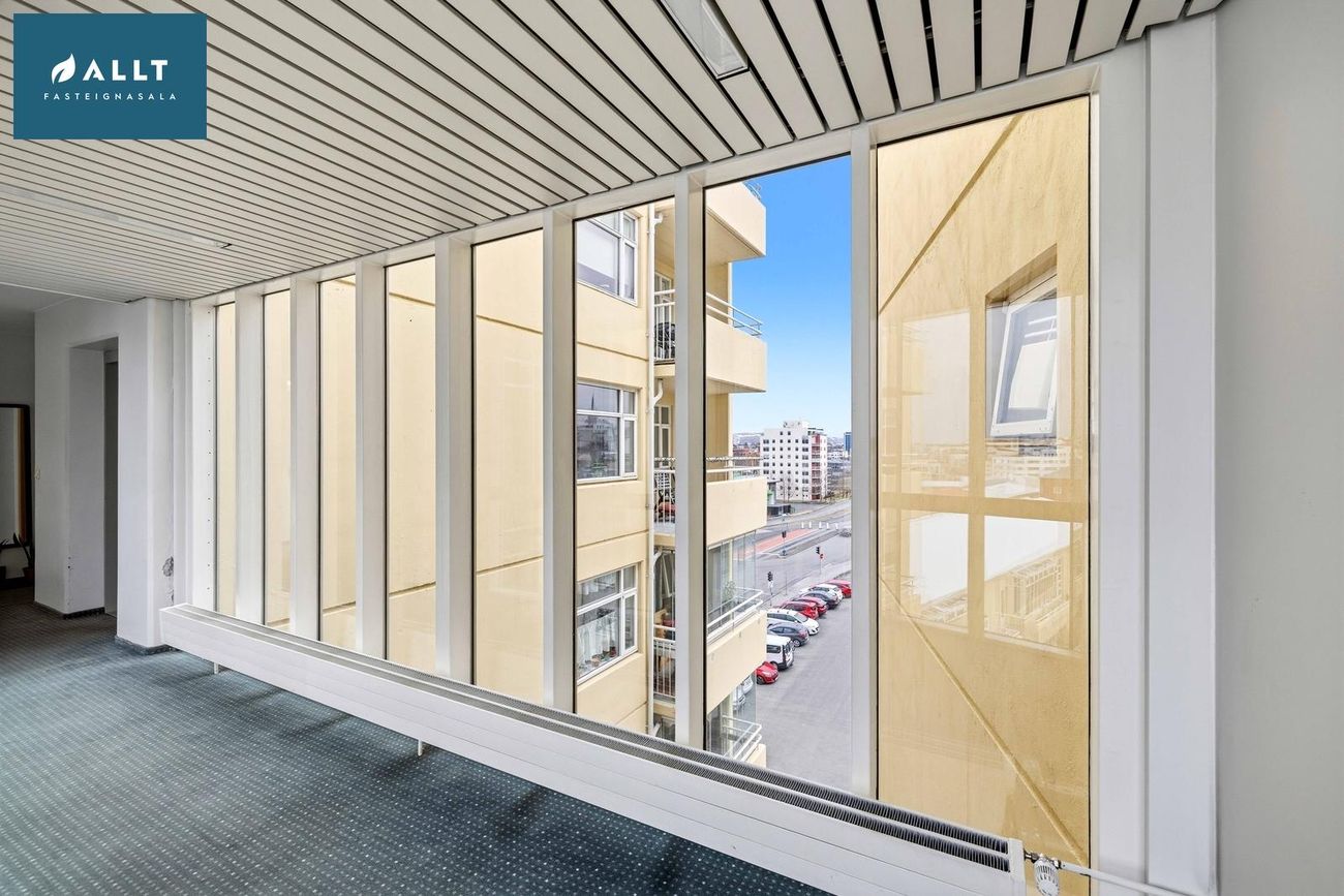 ** Þakjárn endurnýjað 2025Íbúðin er staðsett á 6. hæð í íbúðarkjarna við rætur miðbæjarins. Sameiginlegur og vel gróinn garður fyrir allar íbúðir kjarnans sem er rólegur og aðeins aðgengilegur íbúum. Leiksvæði, verönd og bekkir eru til staðar í garðinum. Húsvörður er í húsinu, vel rekið húsfélag og öll sameign og samskipti milli nágranna til fyrirmyndar.