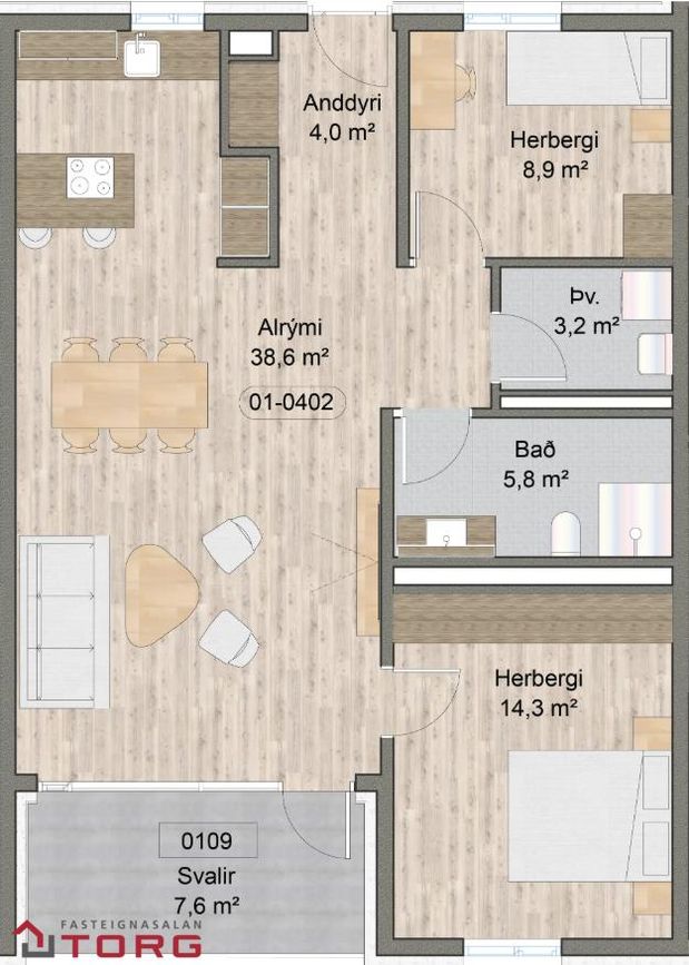 0105 ![]() | 3 | 99,80 m² | 69.900.000 kr. 1. apríl 2026 | - - |