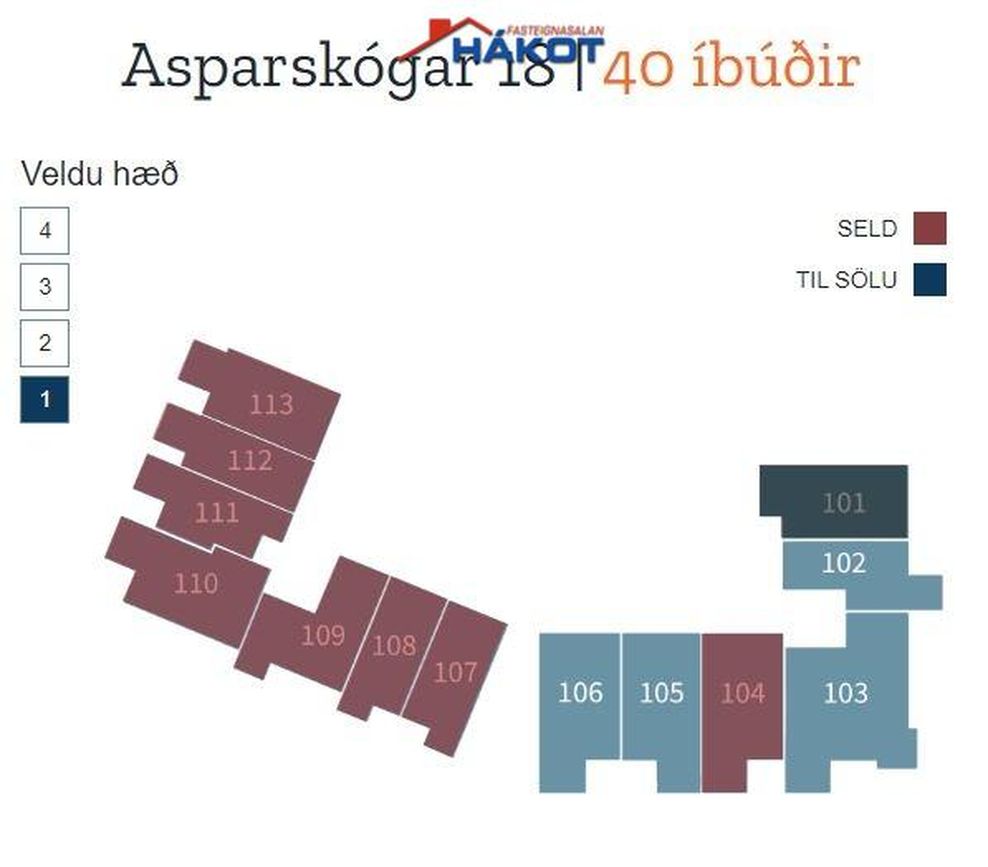 | Íbúð | Síðasta ásetta verð | Síðasti kaupsamningur |