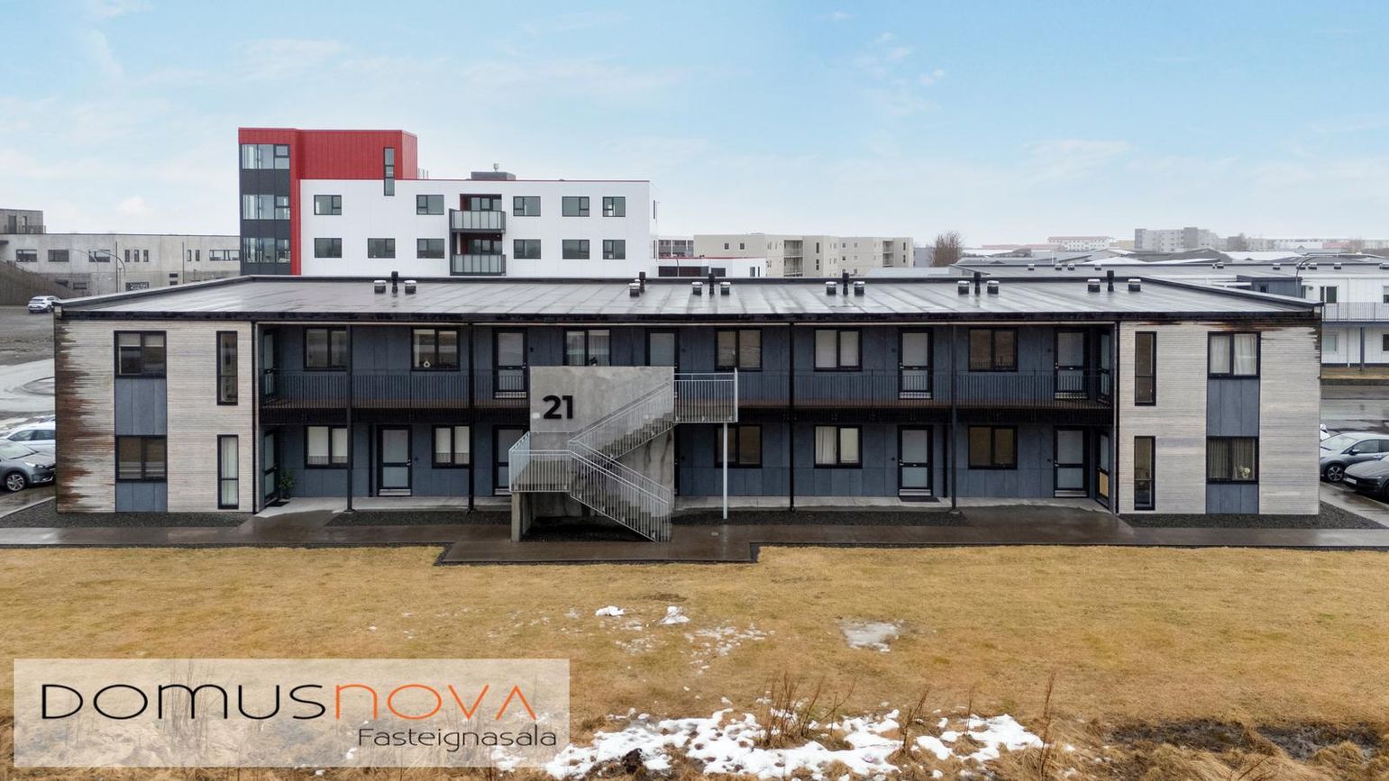 Almenn lýsing:Asparskógar 21 er fjölbýlishús á tveimur hæðum með 12 íbúðum. Sameiginleg geymsla fyrir hjól og vagna ásamt inntaksrými er á jarðhæð, ásamt geymslum fyrir hluta íbúða, aðrar geymslur eru inni í viðkomandi íbúðum. Svalagangur tengir íbúðir á efri hæð. Húsið er timburhús unnið úr einingum klædd að utan með Cembrit klæðningu og brunavarinni timburklæðningu.
