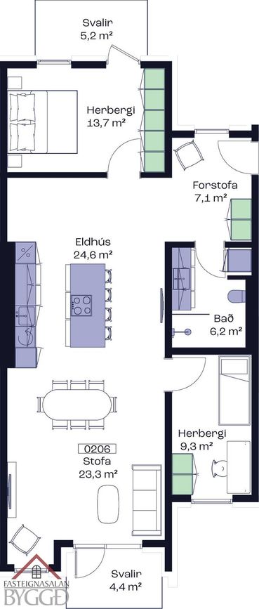 0204 | 2 | 65,10 m² | 61.000.000 kr. 19. febrúar 2025 | 68.000.000 kr. 1. apríl 2025 |