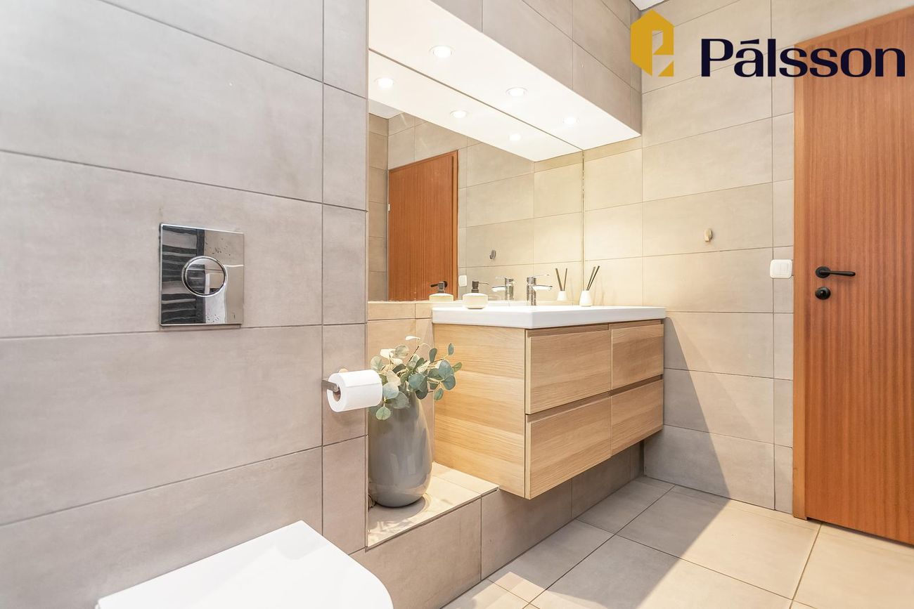 Sér þvottahús innan íbúðar með plássi fyrir þvottavél/þurrkara og auknu geymsluplássi.