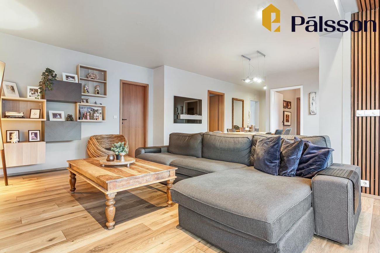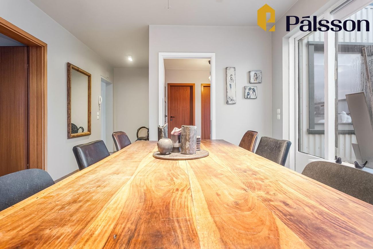 Rúmgott samverurými með góðu plássi, tengt borðstofu.