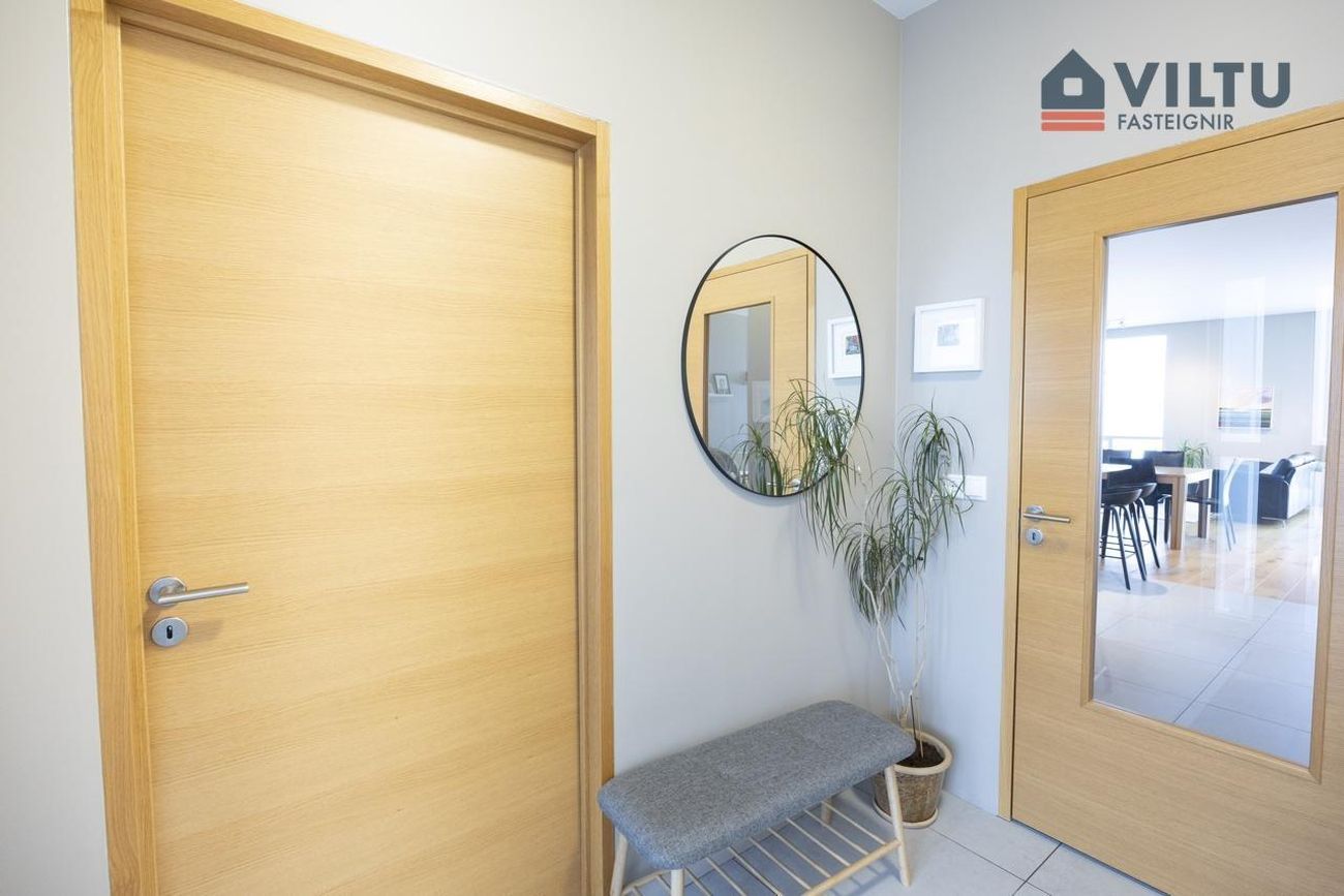 Parketgólf í stofu og svefnherbergjum, flísagólf í forstofu, þvottahúsi, eldhúsi og baðherbergjum.