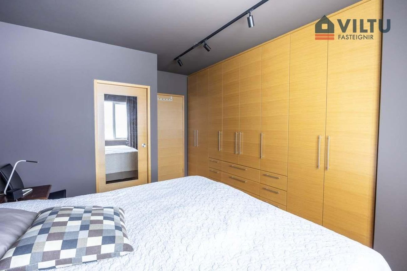 Þrjú svefnherbergi með fataskápum og parketgólfi. Eitt herbergi með hjónasvítu og walk-in sturtu.
