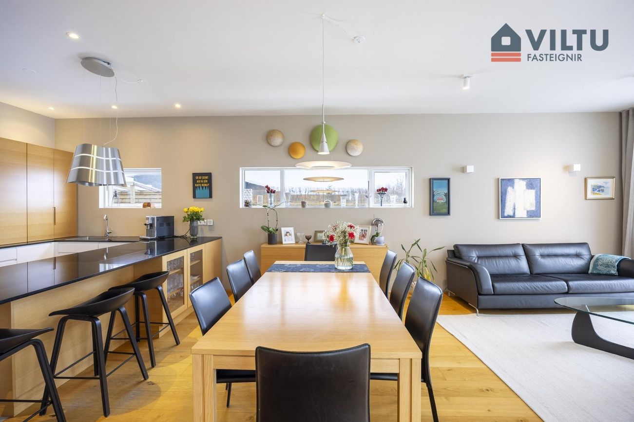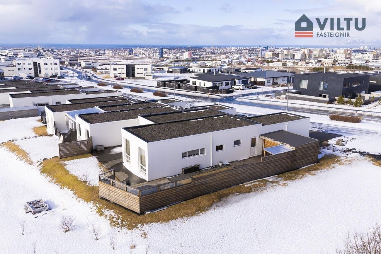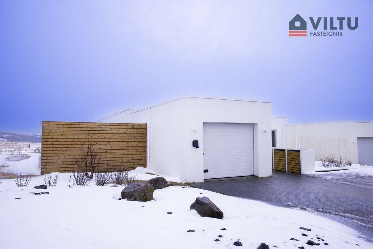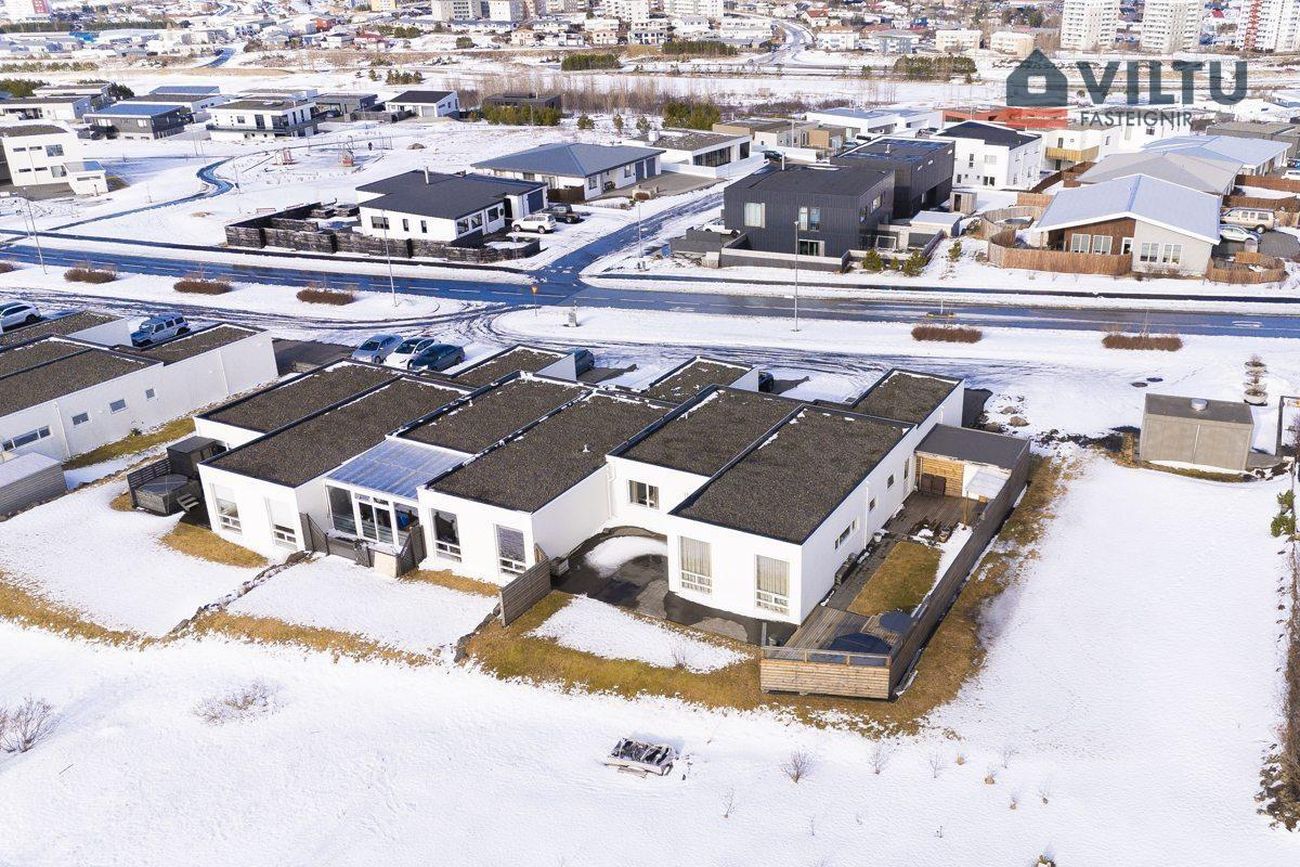 Endaraðhús á einni hæð með 180fm, skiptist í forstofu, þrjú svefnherbergi, tvö baðherbergi, þvottahús, eldhús, stofu og sjónvarpsrými. Mikil lofthæð og skemmtilegt skipulag.