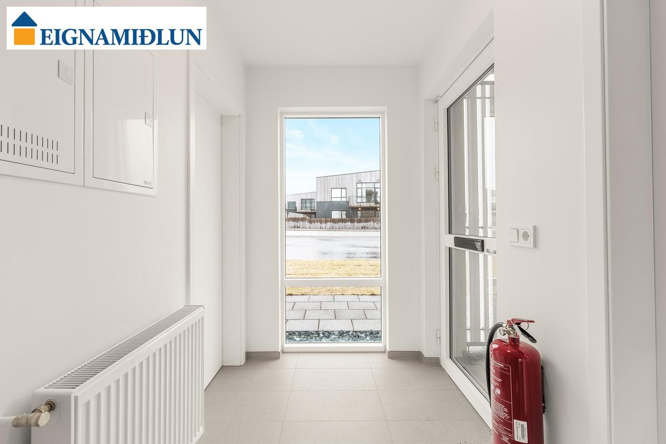 Skipulag eignar: Anddyri, alrými með stofu, borðstofa, eldhús, þrjú svefnherbergi og baðherbergi. Í sameign sérgeymsla, ásamt hjóla,- og vagnageymslu.