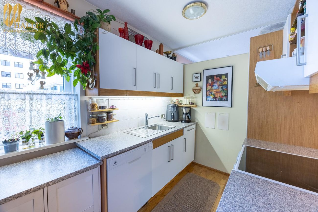 Miklaborg kynnir: Fallega og bjarta 2ja herbergja endaíbúð á 4. hæð í nýlega viðgerðu lyftuhúsi við Austurströnd 8 á Seltjarnarnesi. Möguleiki er á að opna úr holi/stofu inn í eldhús og búa til lítið aukaherbergi þar sem nú er gengið inn í eldhúsið. Íbúðinni fylgir sérmerkt bílastæði í bílageymslu á jarðhæð hússins.