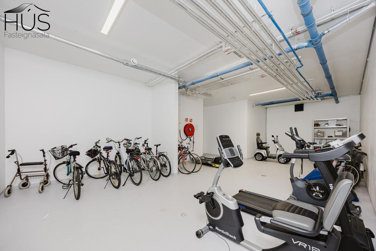 Sér bílastæði í upphituðum kjallara. Rafmagnstengill fyrir hleðslustöð. Rafmagnsopnun á innkeyrsluhurð.