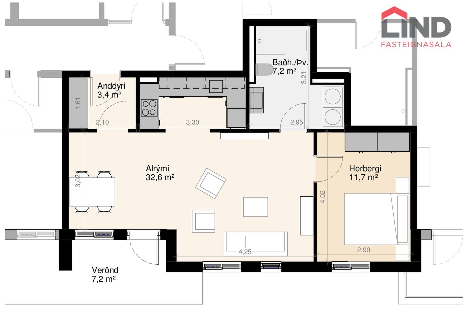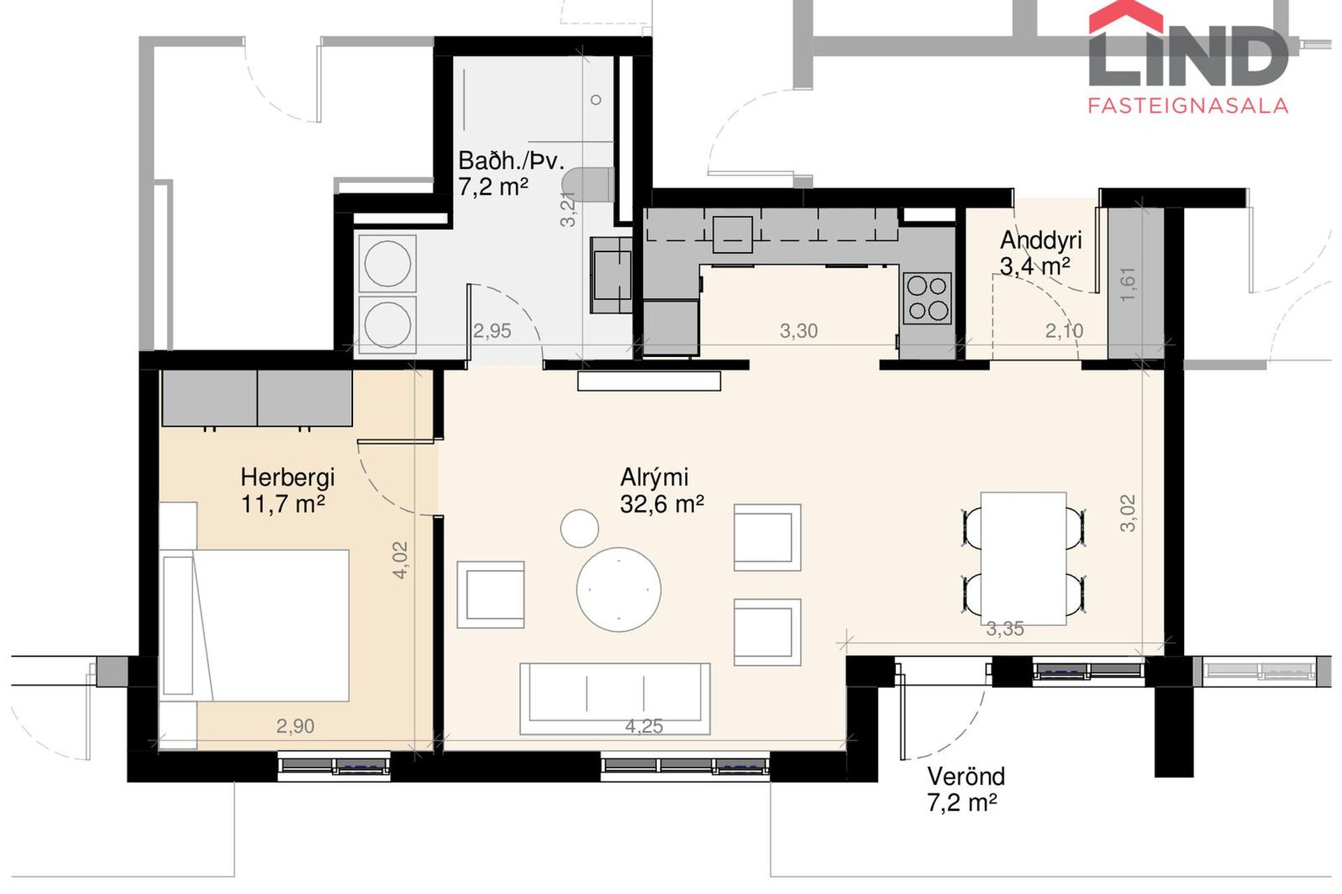 | 2 | 71,90 m² | 58.000.000 kr. 11. janúar 2024 | 62.400.000 kr. 5. maí 2025 |