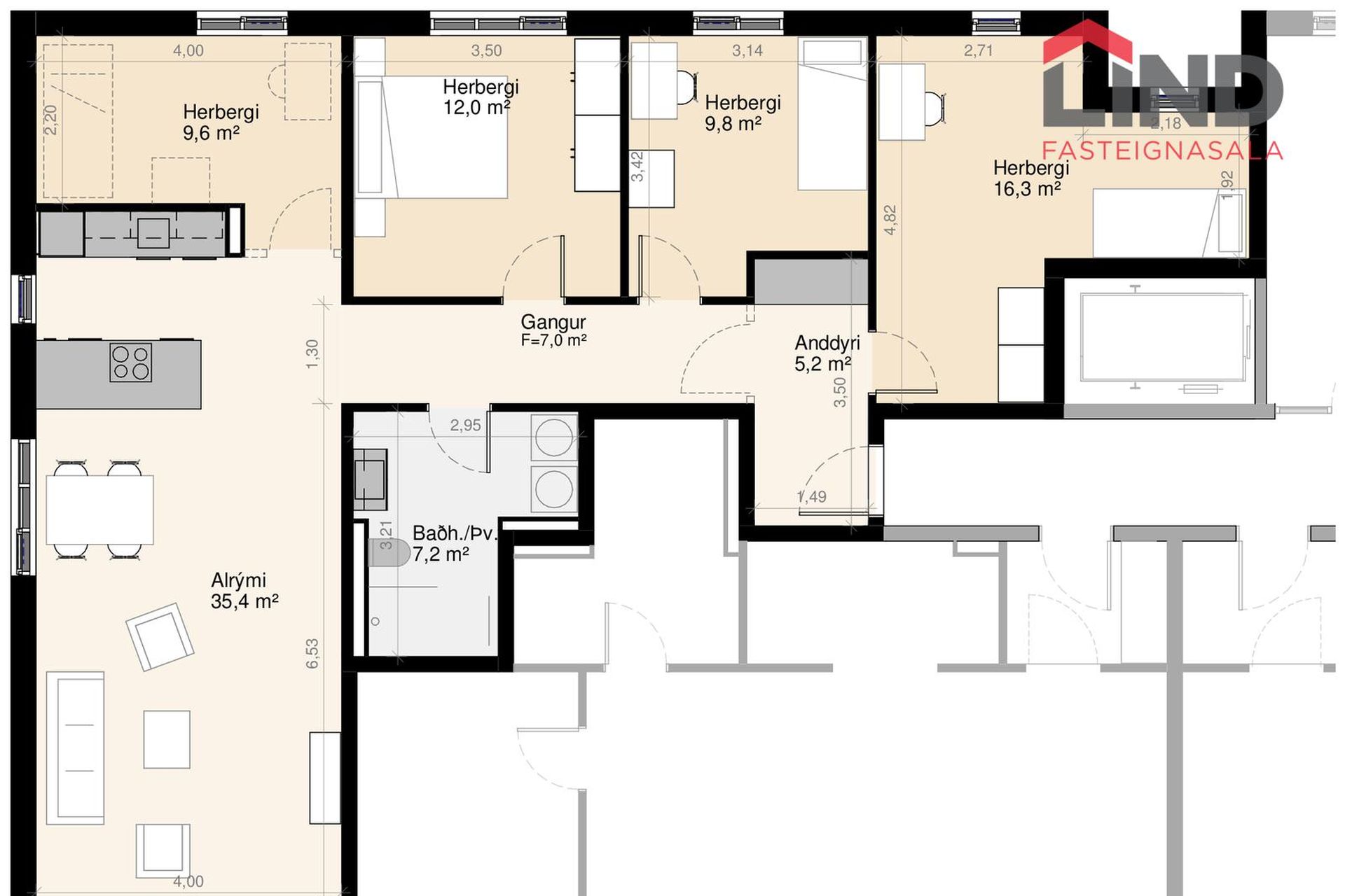 0201 | 5 | 131,90 m² | 86.400.000 kr. 28. apríl 2024 | 75.012.000 kr. 30. október 2023 |
