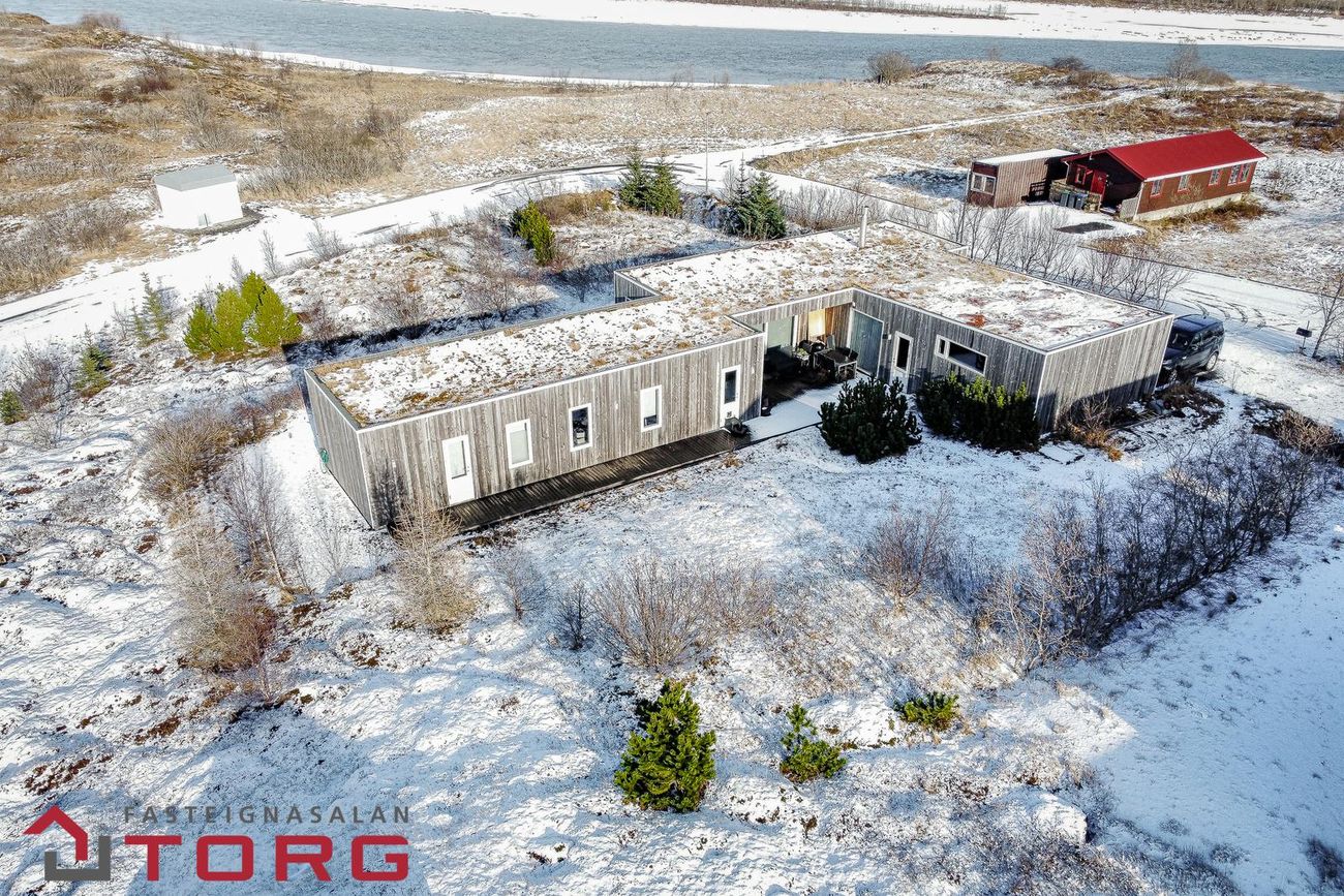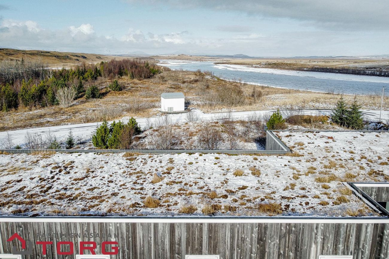 1.650 m² leigulóð með tveimur veröndum, ein yfirbyggð að hluta. Fallegt útsýni yfir Hvítá og fjöll.