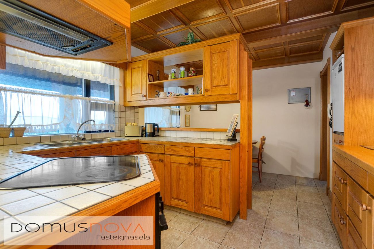 Ágætis innrétting og borðkrók í aðalhúsi. Aukaíbúð: Nýleg innrétting (2025) með helluborð, ofn og búr/geymslu inn af eldhúsi.