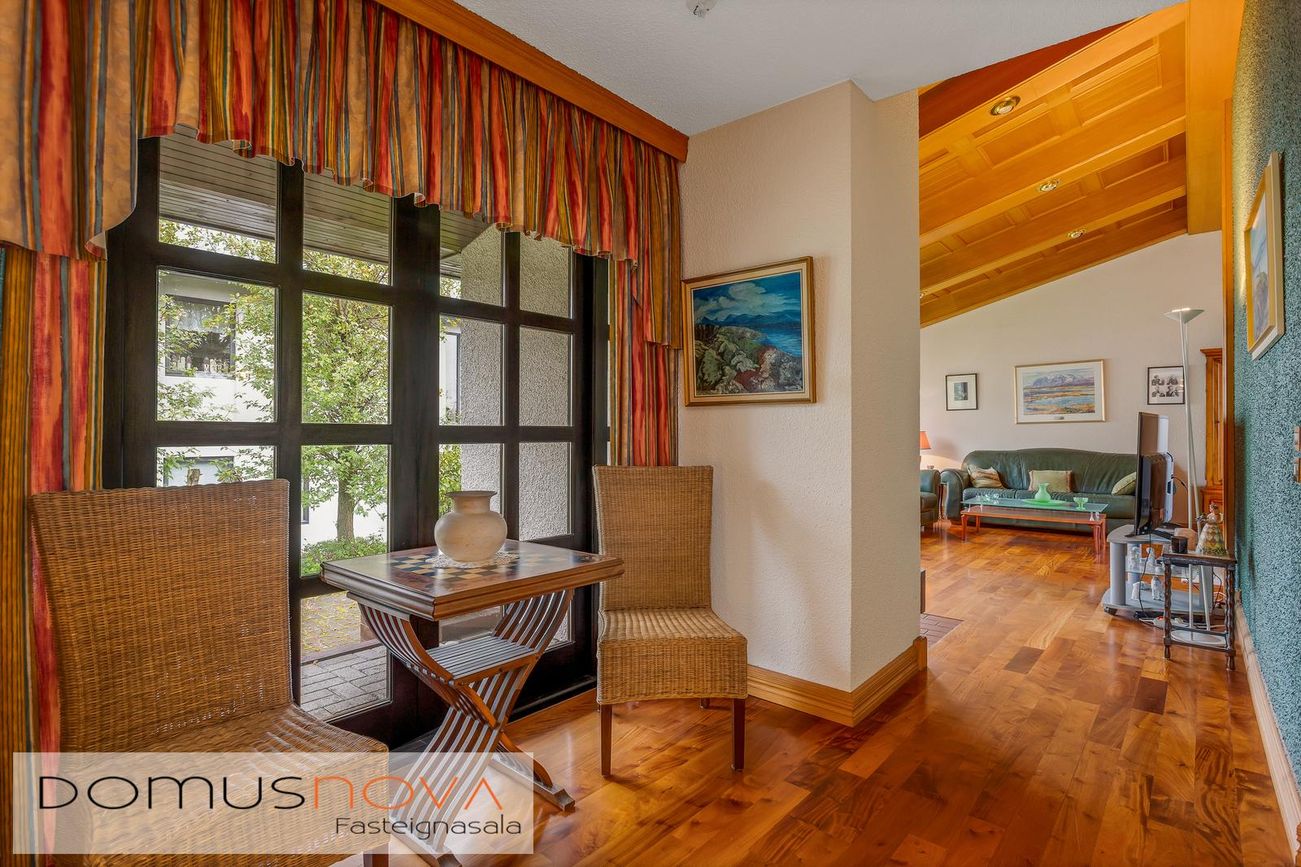 Rúmgóð og björt stofa með ágætu útsýni að Esju.