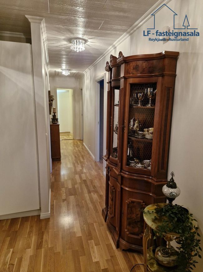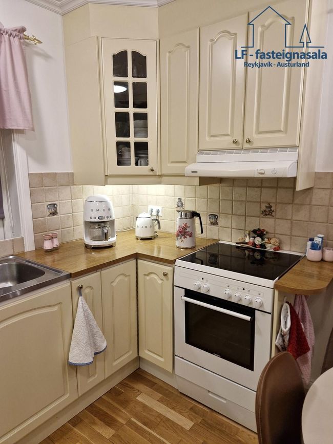 eldhús, stofu, rúmgott baðherbergi, forstofu og þvottahús.