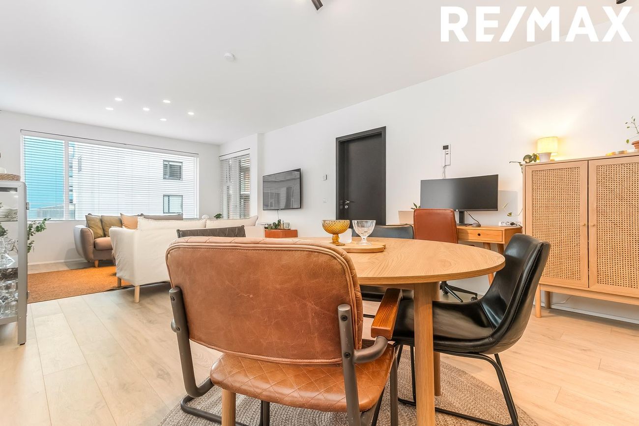 Tveggja herbergja endaíbúð í U-laga byggingu með 38 íbúðir. Björt og rúmgóð með glugga á þrjá vegu og útsýni yfir sameiginlegan garð. Fyrsta hæð með verslunar- og veitingarrými.