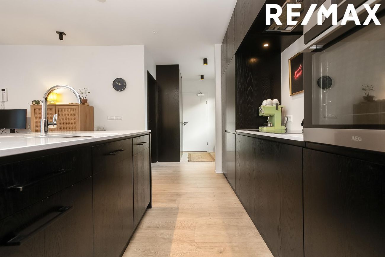 AEG tæki (isskápur, spanhelluborð, ofn, uppþvottavél) og sérsmíðaðar innréttingar.