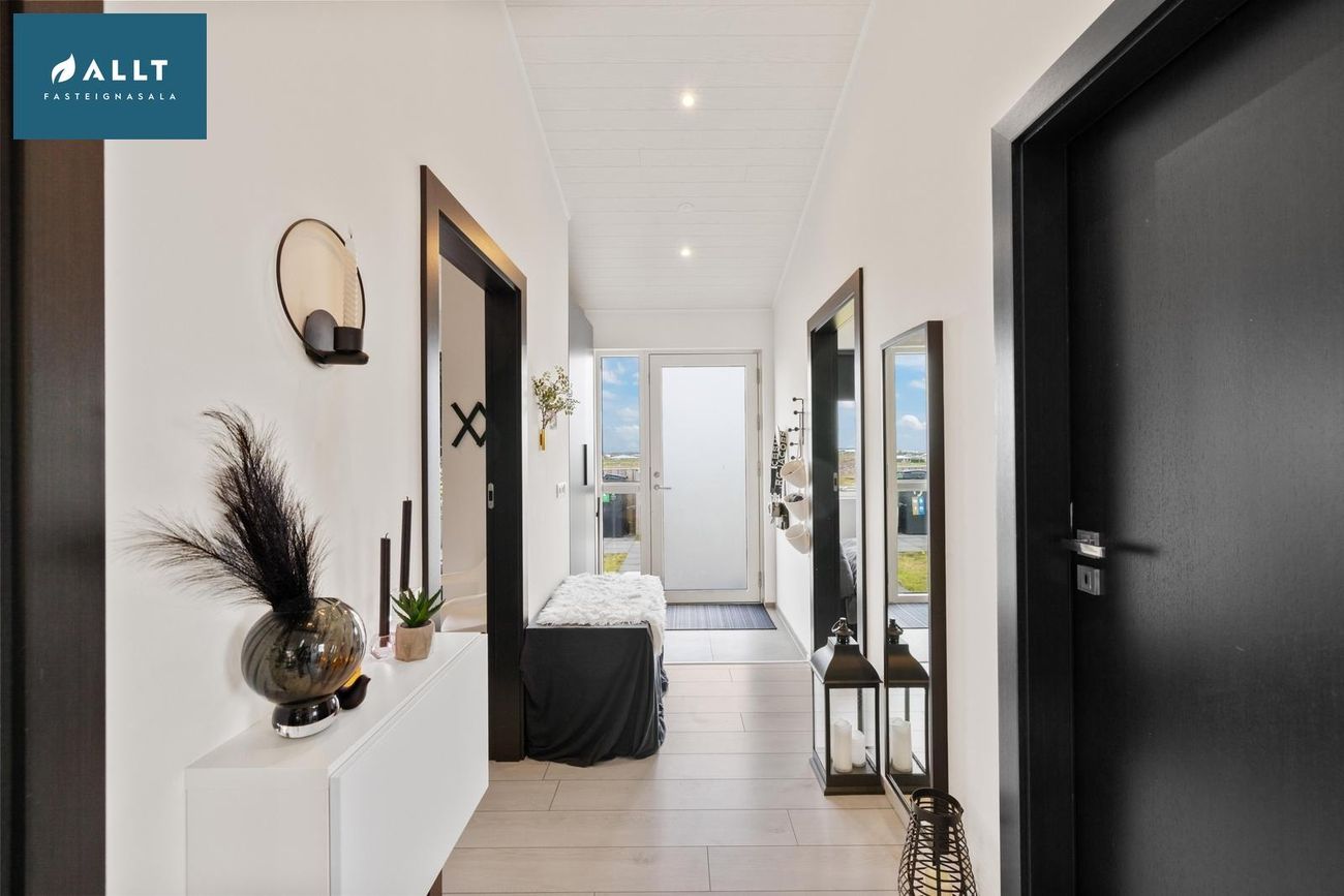 86,7 fm raðhúsíbúð með sólpalli, upphituðum skúr, kvartssteinsborð í eldhúsi og gólfhita.