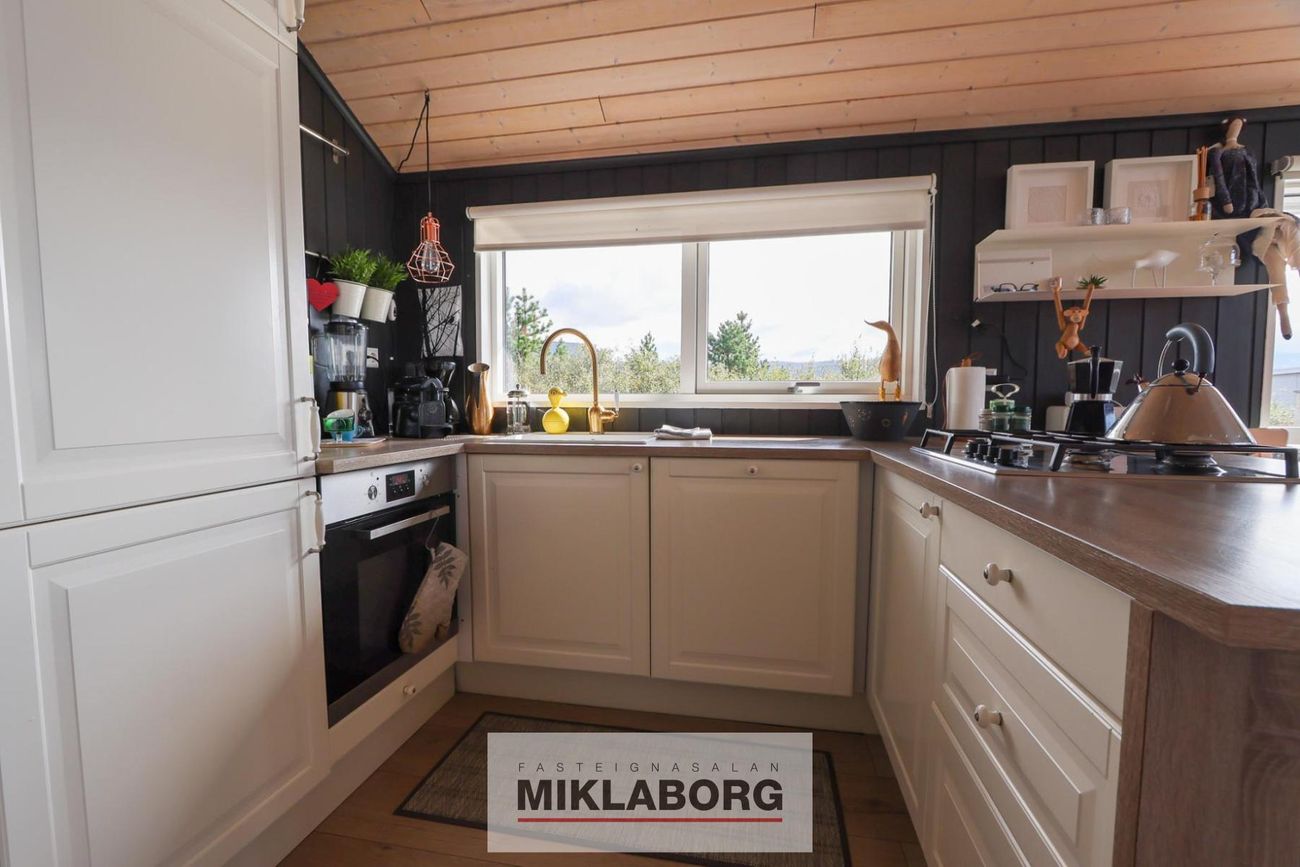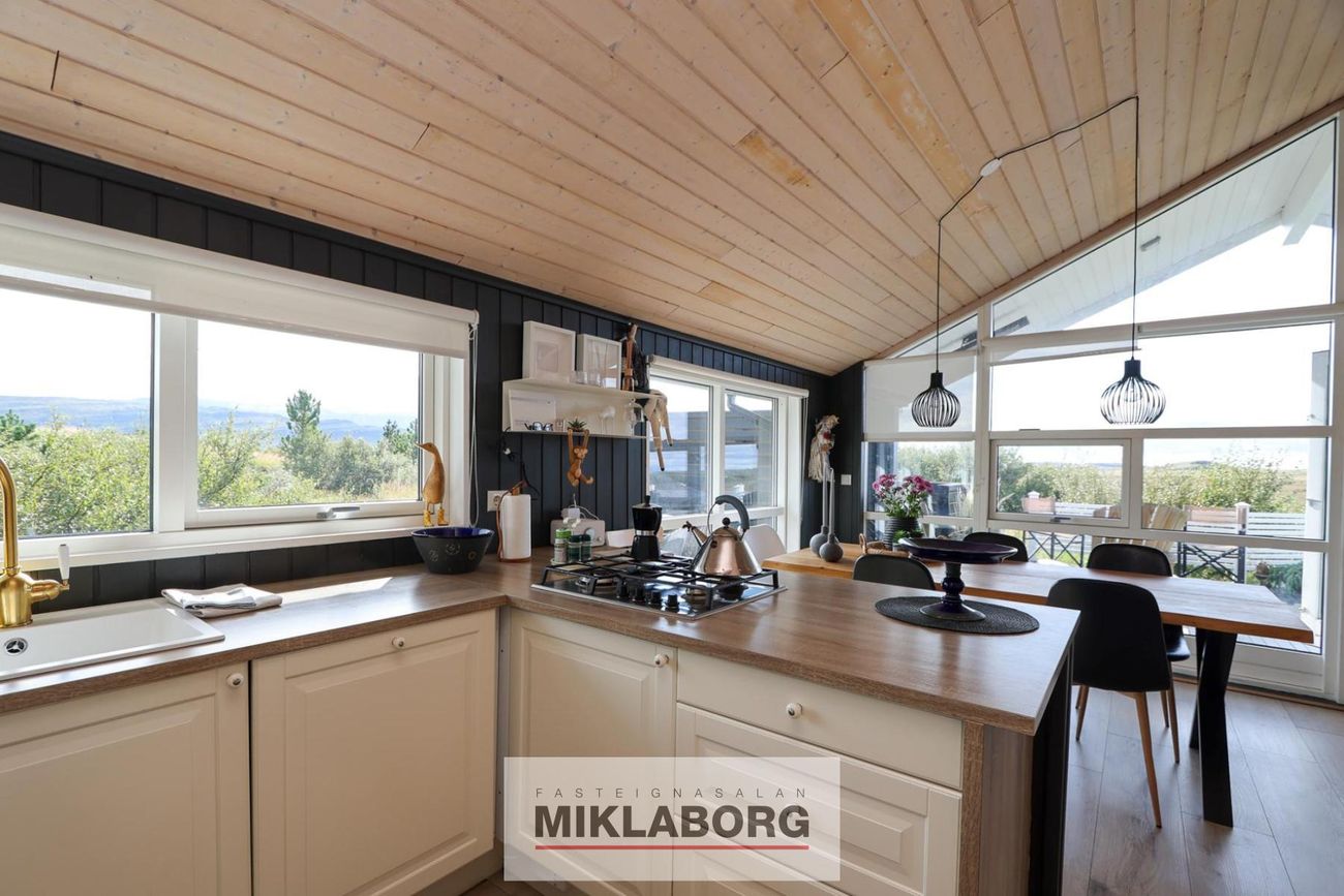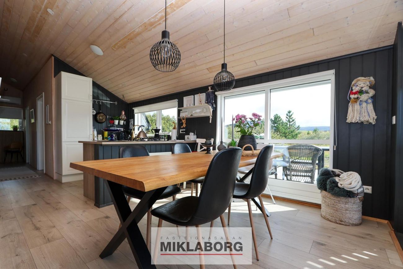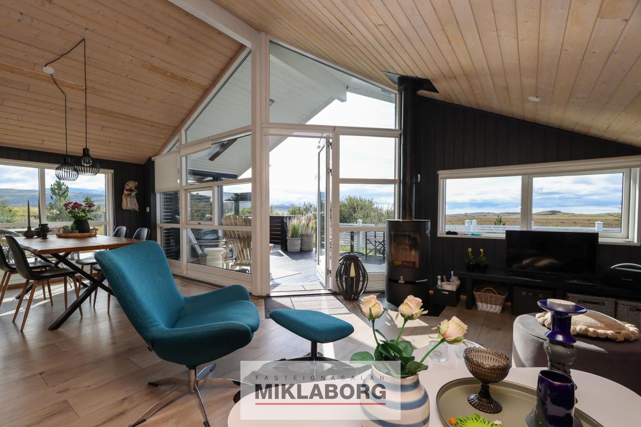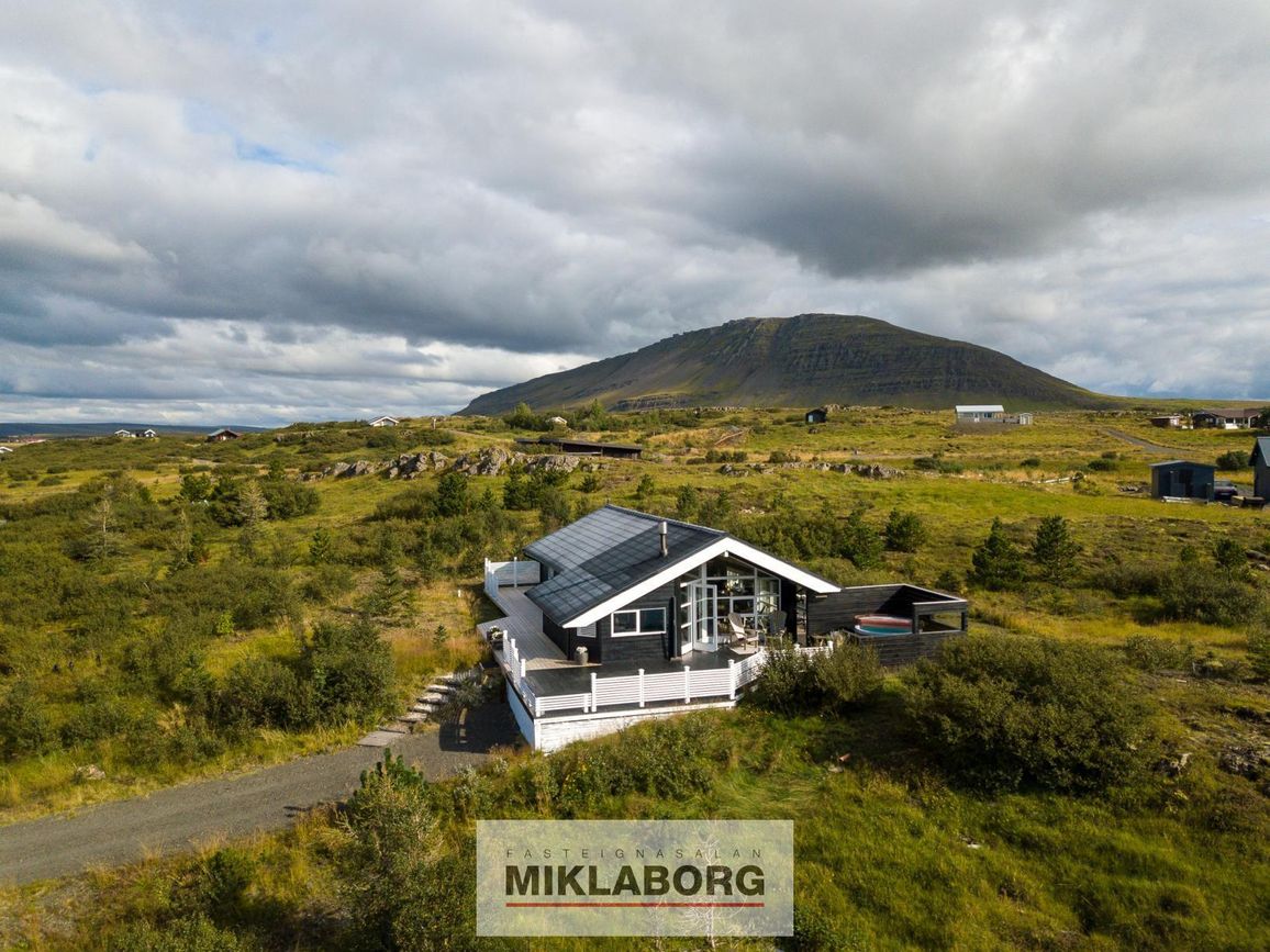 Heilsársbústaður í náttúru. Lóð: 4003 fm. Árlegur rekstrarkostnaður með fasteignagjöldum: um 600.000 kr. Þrjú svefnherbergi. Opinn alrými með eldhúsi, stofu og borðstofu.