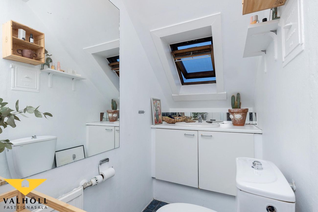 Eignin hefur verið haglega breytt frá upphaflegum teikningum í 2 íbúðareiningar. Báðar ná þær í gegnum húsið og eru því bjartar og með glugga í 2 áttir.