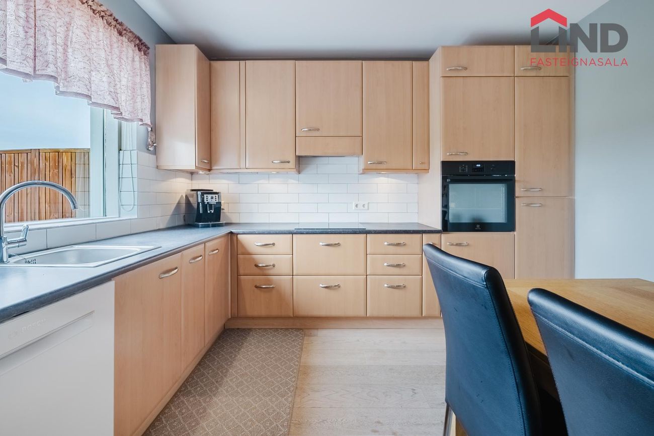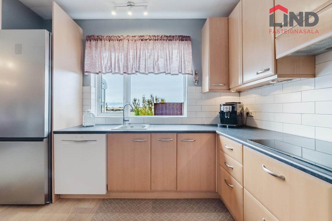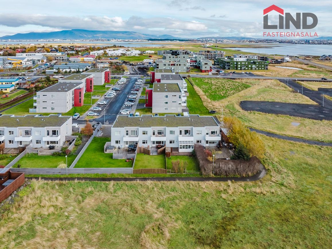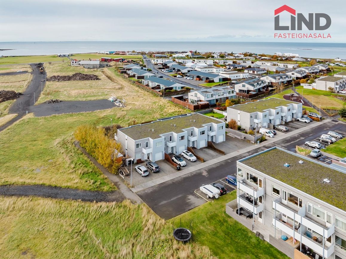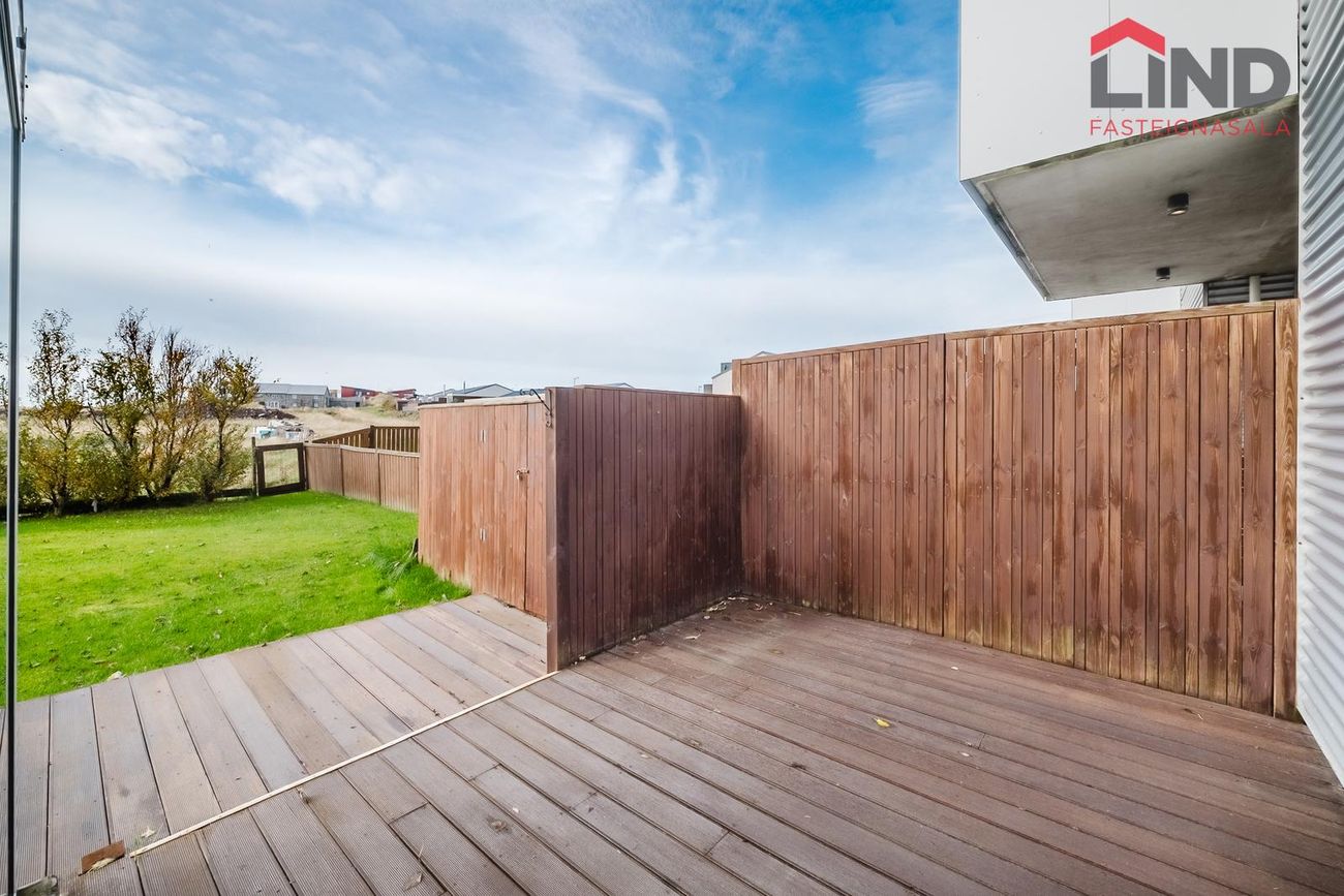 Atli á Lind fasteignasölu kynnir í einkasölu þetta fallega og bjarta 180,9 fm raðhús á tveimur hæðum með bílskúr. Í húsinu er virkilega fallegt útsýni af tvennum svölum sem snúa annars vegar í suður og hinsvegar í norður. Stór afgirtur garður með timburverönd sem snýr í suður ásamt notalegum sólskála með hita í gólfi. Bílskúr með hleðslustöð fyrir rafbíl.