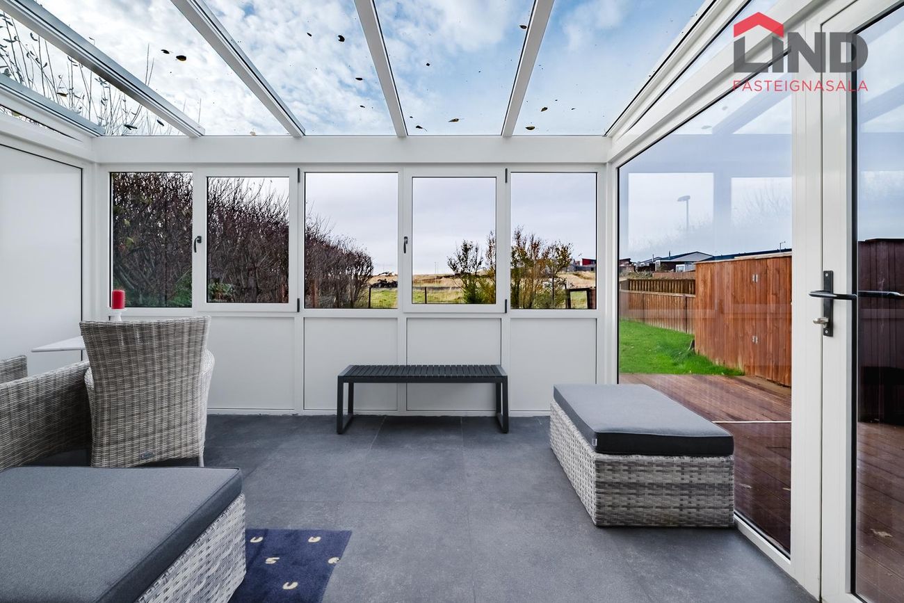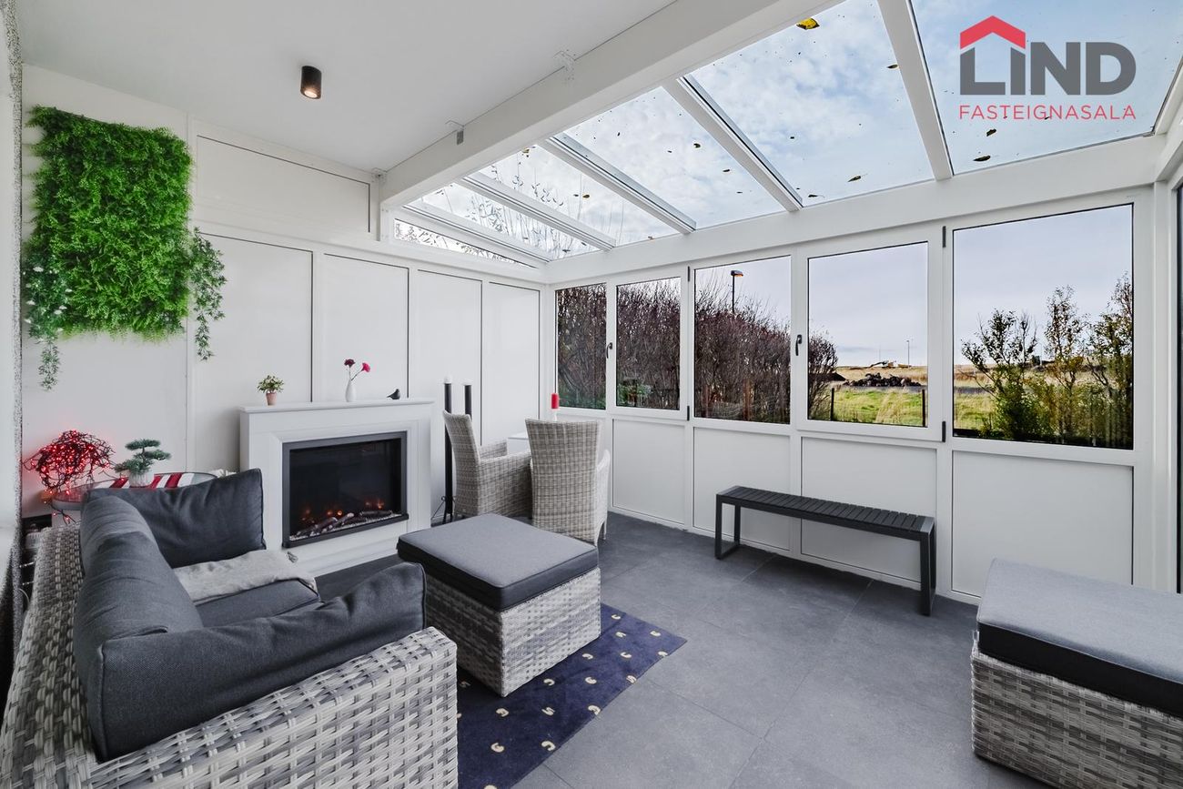 Atli Karl Pálmason - Löggiltur fasteignasali / atli@fastlind.is / 662-4252Eignin skiptist í tvær hæðir, 4 svefnherbergi, baðherbergi, gestasnyrtingu, eldhús, stofu, sjónvarpshol, þvotthús, sólskála, geymslu, 2 svalir og bílskúr.