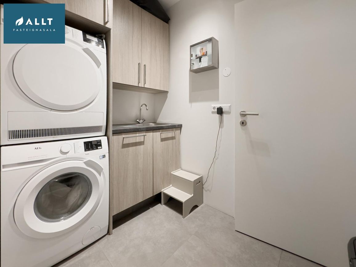 Þvottahús er flísalagt, innan íbúðar, með vaski og góðri innréttingu.