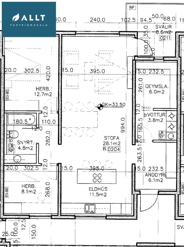Skoðunar- og aðgæsluskylda kaupanda:Í lögum um fasteignakaup nr. 40/2002 er kveðið á um ríka skoðunarskyldu kaupenda á fasteignum. ALLT fasteignasala vill beina því til væntanlegs kaupanda að kynna sér ástand fasteignar vel við skoðun og fyrir tilboðsgerð. Ef þurfa þykir er ráðlagt að leita til sérfræðifróðra aðila. Forsendur söluyfirlits: Söluyfirlit þetta er samið af fasteignasala til samræmis við lög um sölu fasteigna og skipa nr. 70/2015. Upplýsingar þær sem koma fram í söluyfirliti þessu eru sóttar í opinberar skrár, frá seljanda og eftir atvikum til húsfélags. Seljandi veitir upplýsingar um eignina til samræmis við upplýsingaskyldu sína sbr. lög um fasteignakaup nr. 40/2002. Fasteignasali sannreynir að upplýsingar séu réttar með sjónskoðun á eigninni. Fasteignasali getur ekki fullyrt um ástand og eiginleika þeirra hluta fasteignar sem ekki eru aðgengilegir og sjást ekki með berum augum, eins og t.d. lagnir, dren, skólp og þak.