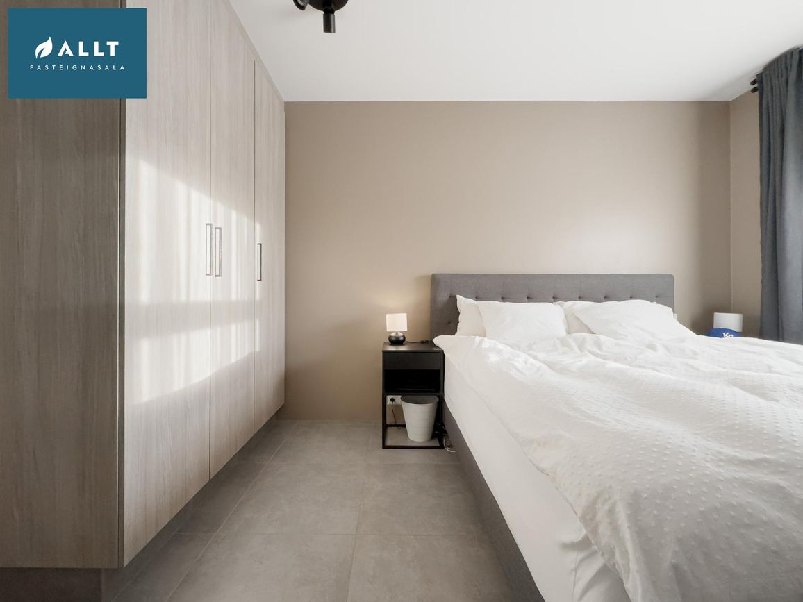 Hjónaherbergi: Rúmgott með góðum skáp og flísar á gólfi