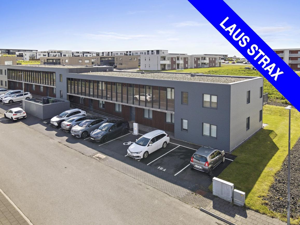 Íbúðin skiptist í anddyri, stofu og eldhús í opnu rými, baðherbergi með þvottaaðstöðu, tvö svefnherbergi og geymsla innan íbúðar sem hægt er að nýta sem þriðja svefnherbergið. Merkt bílastæði og sameiginleg hjóla- og vagna geymsla.Nánari lýsing:Komið er inn í
