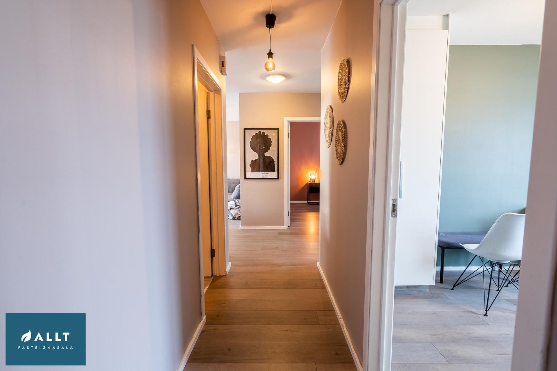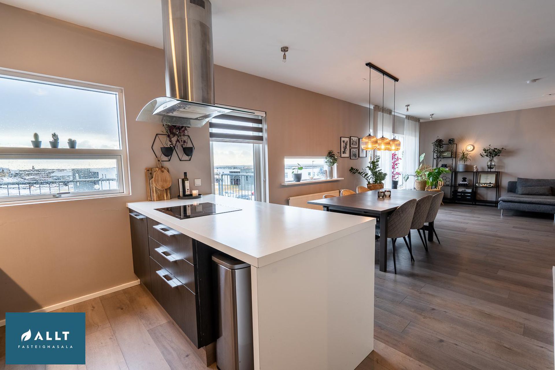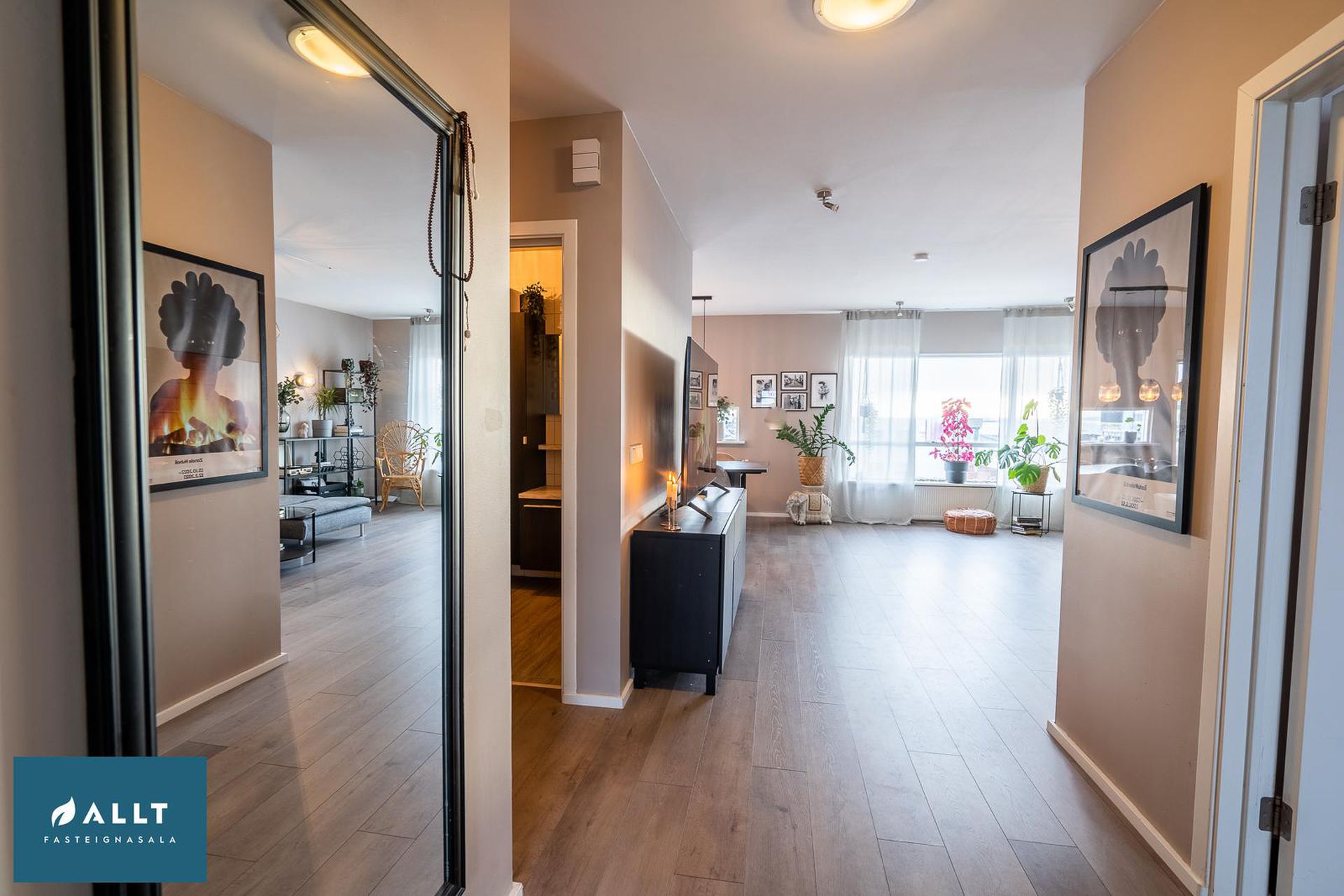 ALLT FASTEIGNASALA kynnir í einkasölu - Fallega 4ra herbergja, 144,3 fm2 íbúð með sérinngangi á 3ju hæð í fjölbýlishúsi ásamt bílskúr við Bjarkardal í Reykjanesbæ. Nýr grunn- og leikskóli í göngufæri.Fallegt útsýni og suðsvalir.Íbúðin skiptist í anddyri, eldhús, stofu, 3 svefnherbergi, þvottahús, baðherbergi, geymslu. Svalir í suður og sér merkt stæði og bílskúr.Birt stærð er 144,3 fm íbúð 110,1 fm - geymsla 8,5fmBílskúr 25,7 fm Nánari upplýsingar og skoðunarbókanir veitirBjarklind Þór löggiltur fasteignasali á eða í síma 690-5123Nánari lýsing íbúðarForstofa er rúmgóð með hvítum háglans fataskáp. Flísar á gólfi.Eldhús er parketlagt, í opnu rými með stofu en stúkað af með eyju, svarbrún innrétting, veggofn, helluborð er í eyju og er stálháfur yfir. Tengi er fyrir uppþvottavél. Hvít borðplata.Útgengt er á suðursvalir frá eldhúsi.Hjónaherbergi er parketlagt og með góðum háglans fataskápum.Herbergi 2 er parketlagt, með fataskáp Herbergi 3 er parketlagt, með fataskápStofa er parketlögð, björt, og rúmgóð.Baðherbergi er flísalagt í hólf og gólf. walkin sturta, handklæðaofn, upphengt salerni og góð innrétting frá Ikea með vask á borði. Þvottahús er innaf eldhúsi, flísalagt með rúmgóðri hvítri innréttingu sem rúmar bæði þvottavél og þurrkara.Merkt sérgeymsla í sameign fylgir íbúðinni. Þar er einnig stór hjóla og vagnageymsla.Bílskúr er með rafmagn, heitt og kalt neysluvatn, hita, niðurfalli og er endaskúr.Stutt er í Stapaskóla og Akurskóla, leikskólann Akur, leikskólann Holt, Krambúðina og alla helstu verslun og má þar nefna Bónus og Krónuna í nánasta umhverfi. Fylgdur okkur á facebook: https://www.facebook.com/fasteignasolur/ALLT FASTEIGNIR – MOSFELLSBÆ - REYKJANESBÆ - GRINDAVÍK - VESTMANNAEYJUM Kostnaður kaupanda:1. Stimpilgjald af kaupsamningi - 0.8% af heildarfasteignamati.2. Þinglýsingargjald af kaupsamningi, veðskuldabréfi, veðleyfi o.fl.kr 2.500 af skjali.3. Lántökugjald lánastofnunar – Fer eftir lánastofnun hverju sinni.4. Umsýslugjald til fasteignasölu, kr. 50.000 auk vsk. sbr. kauptilboð.Fasteignakaupalög nr. 40/2002 leggja ríka skoðunarskyldu á kaupendur. Við brýnum því fyrir kaupendum að skoða fasteignir vel fyrir tilboðsgerð og leita sér viðeigandi aðstoðar sérfræðinga þegar ástæða þykir til.