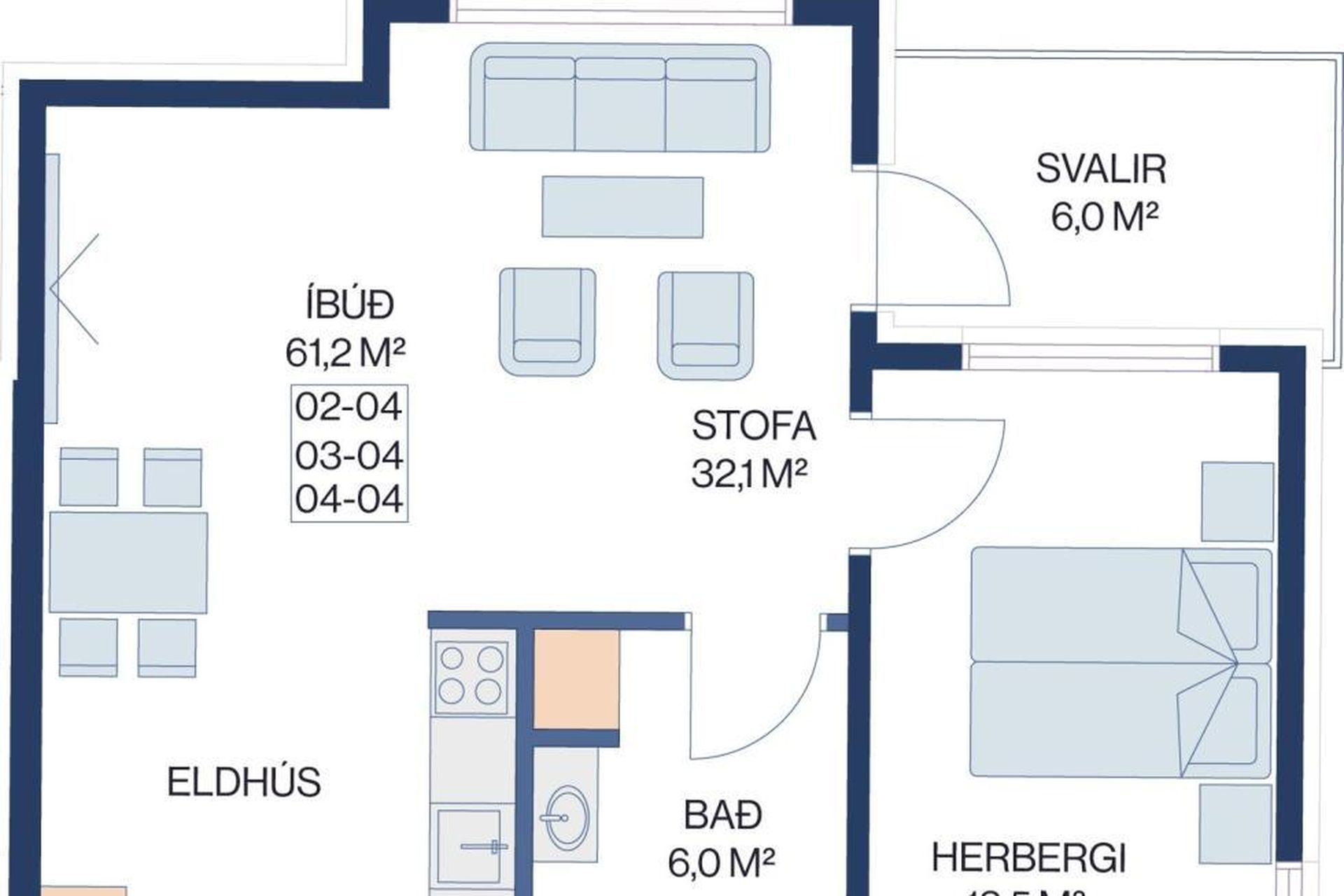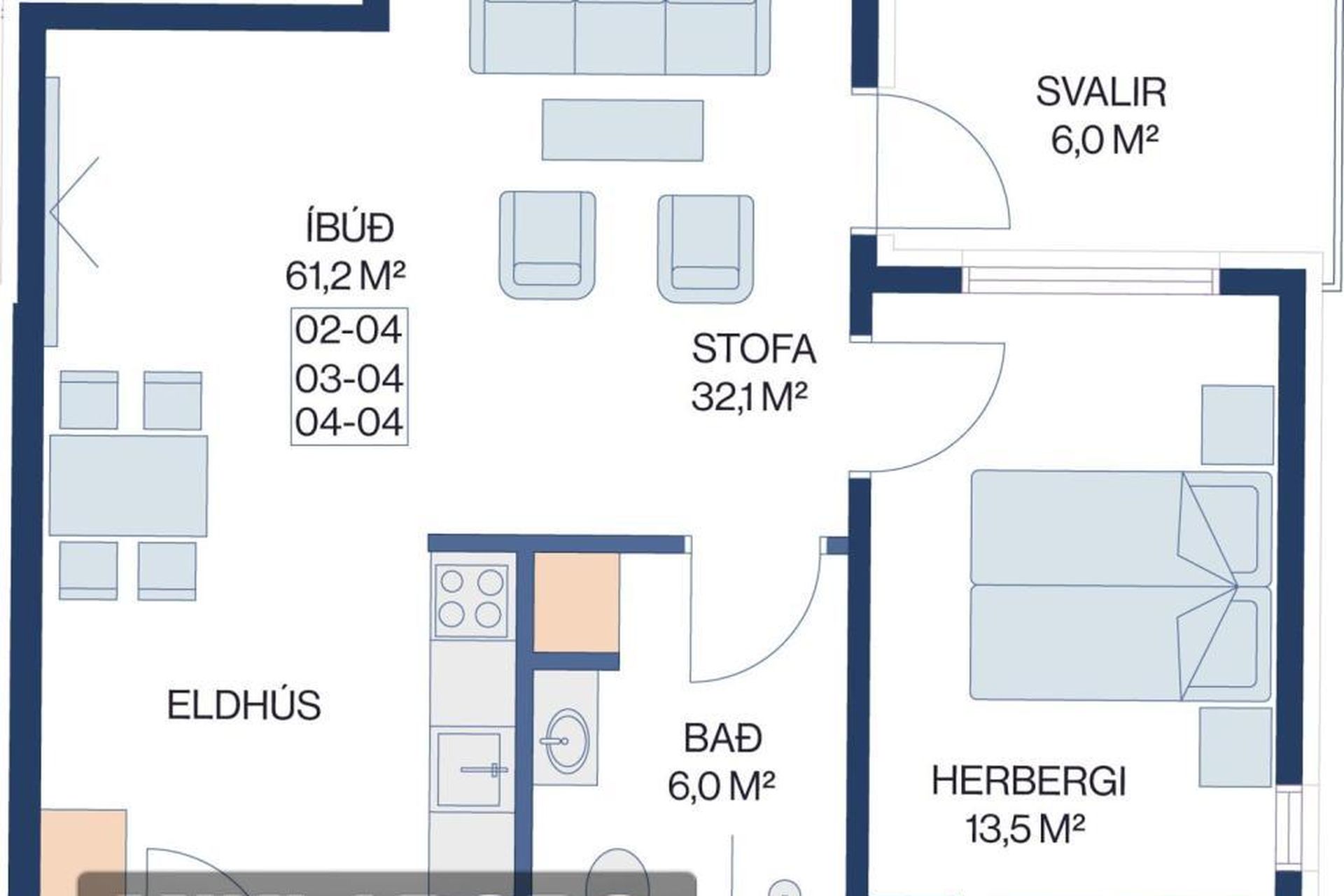 | 2 | 68,10 m² | 61.900.000 kr. 11. apríl 2025 | 60.900.000 kr. 30. maí 2025 |
