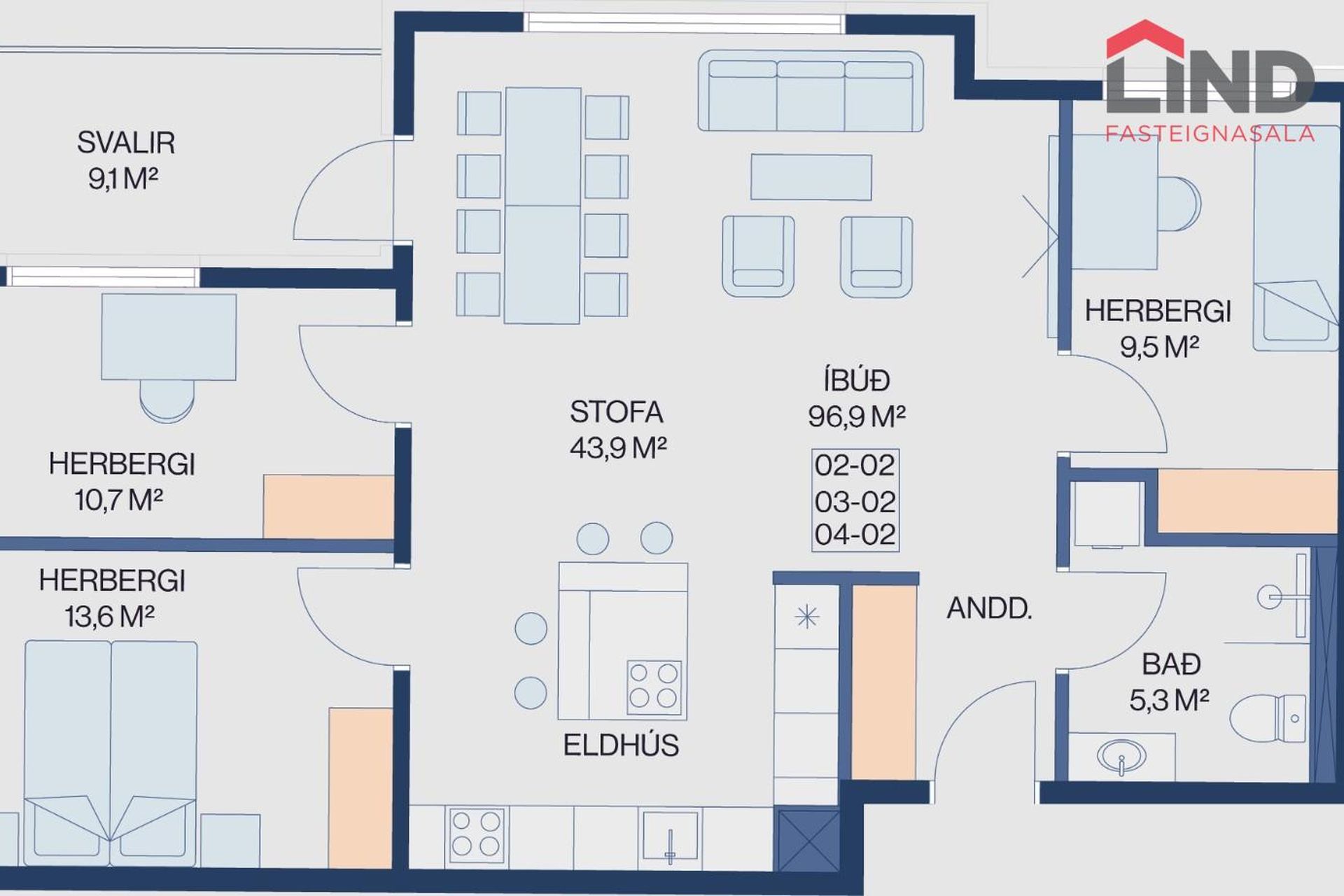 0503 ![]() | 3 | 80,60 m² | 77.900.000 kr. 30. maí 2024 | 76.900.000 kr. 9. apríl 2024 |