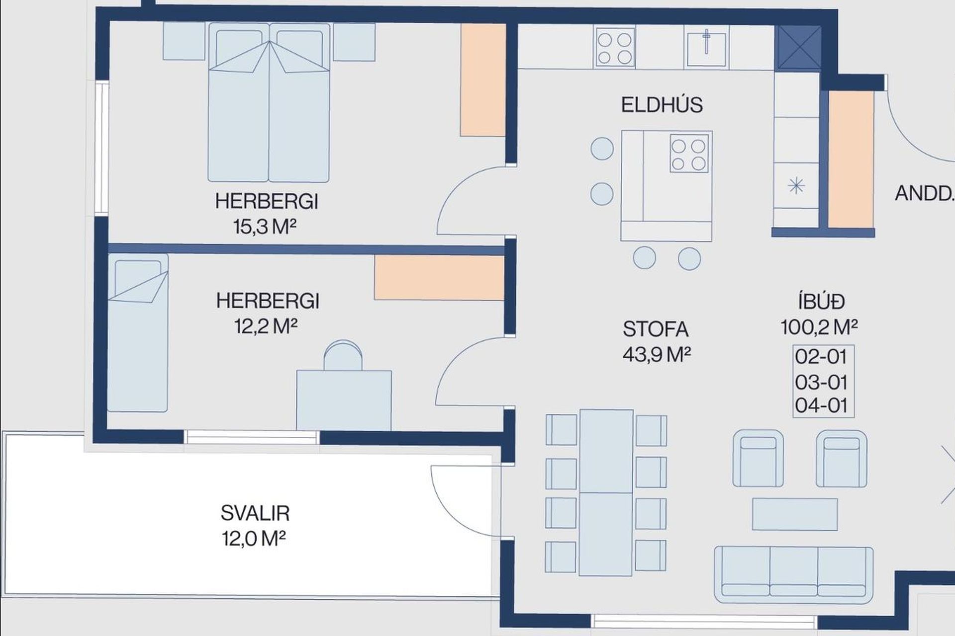 | 3 | 95,70 m² | 77.900.000 kr. 24. janúar 2024 | 75.900.000 kr. 14. ágúst 2024 |