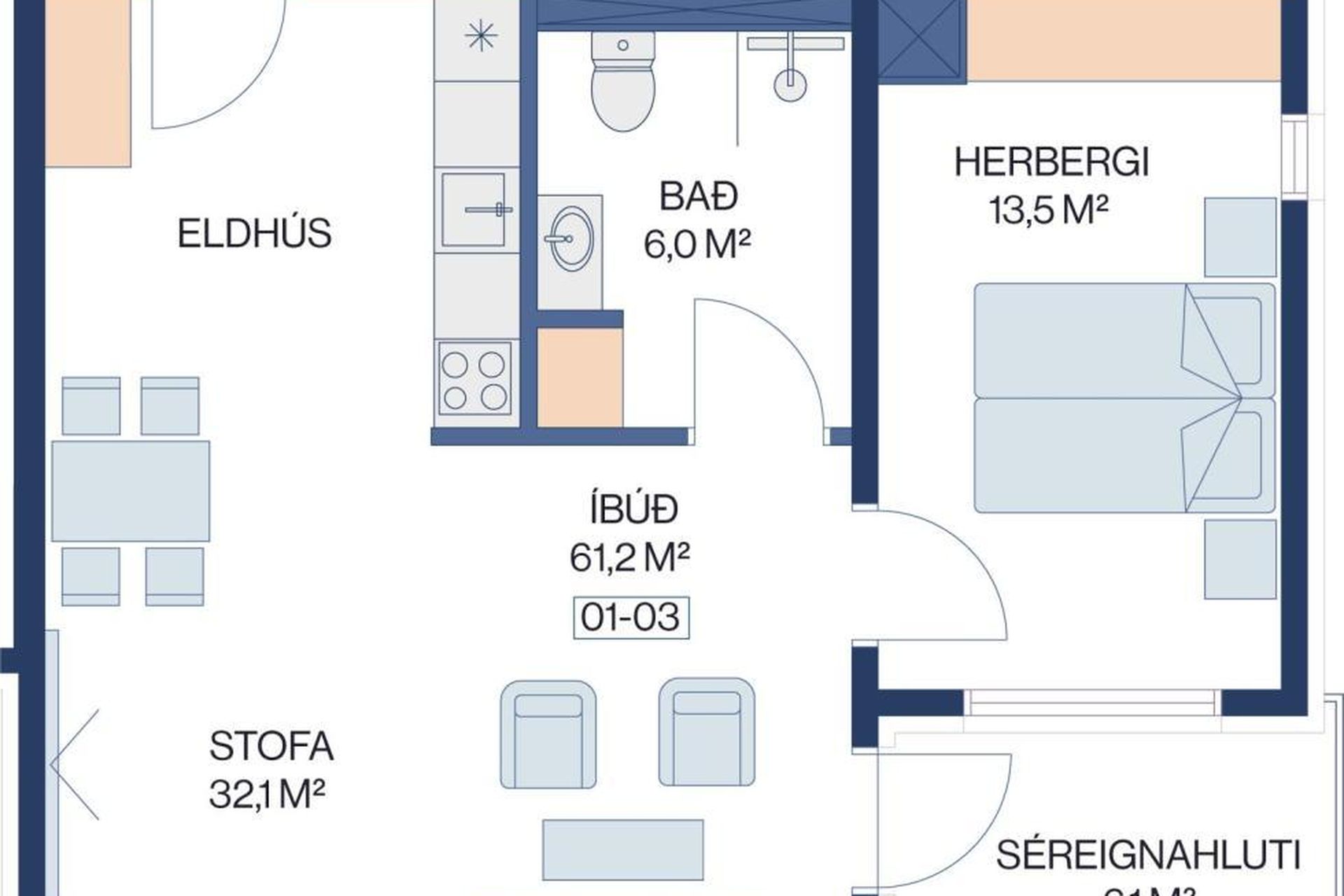 | 3 | 103,80 m² | 84.900.000 kr. 14. janúar 2024 | 84.900.000 kr. 3. apríl 2024 |
