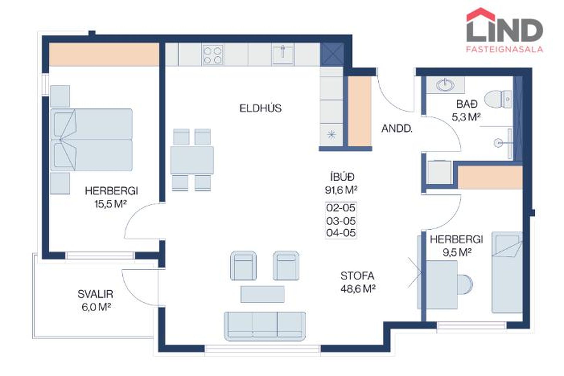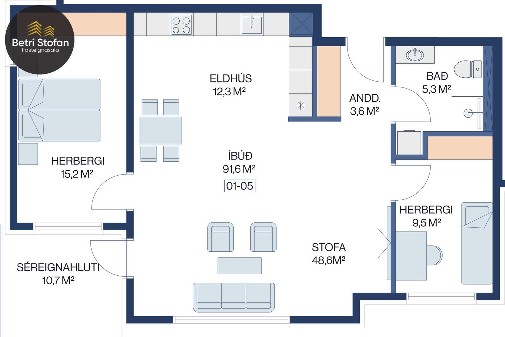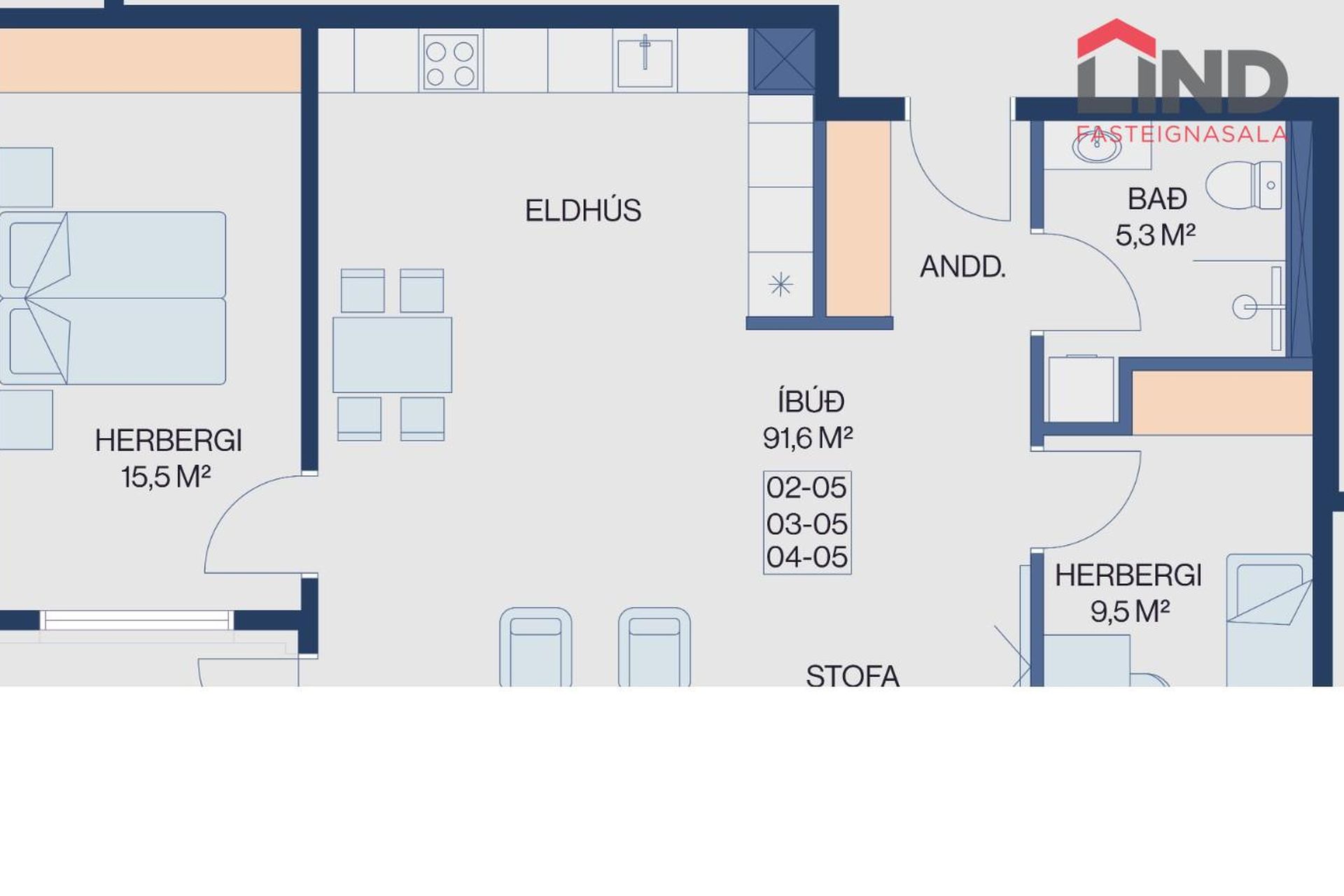 | 3 | 103,80 m² | 84.900.000 kr. 14. janúar 2024 | 84.900.000 kr. 3. apríl 2024 |