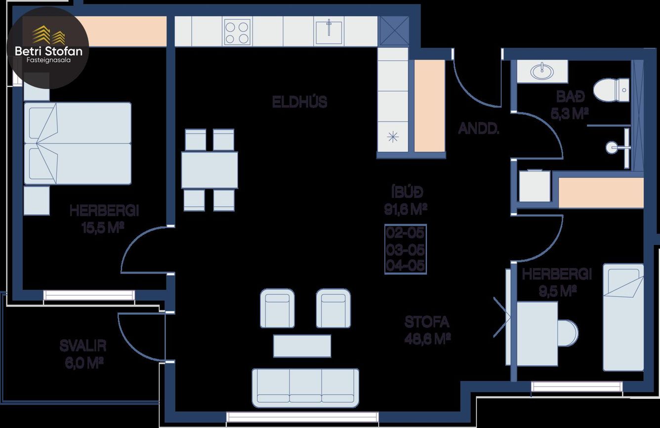 | 3 | 91,50 m² | 75.000.000 kr. 3. apríl 2026 | 78.900.000 kr. 14. maí 2025 |