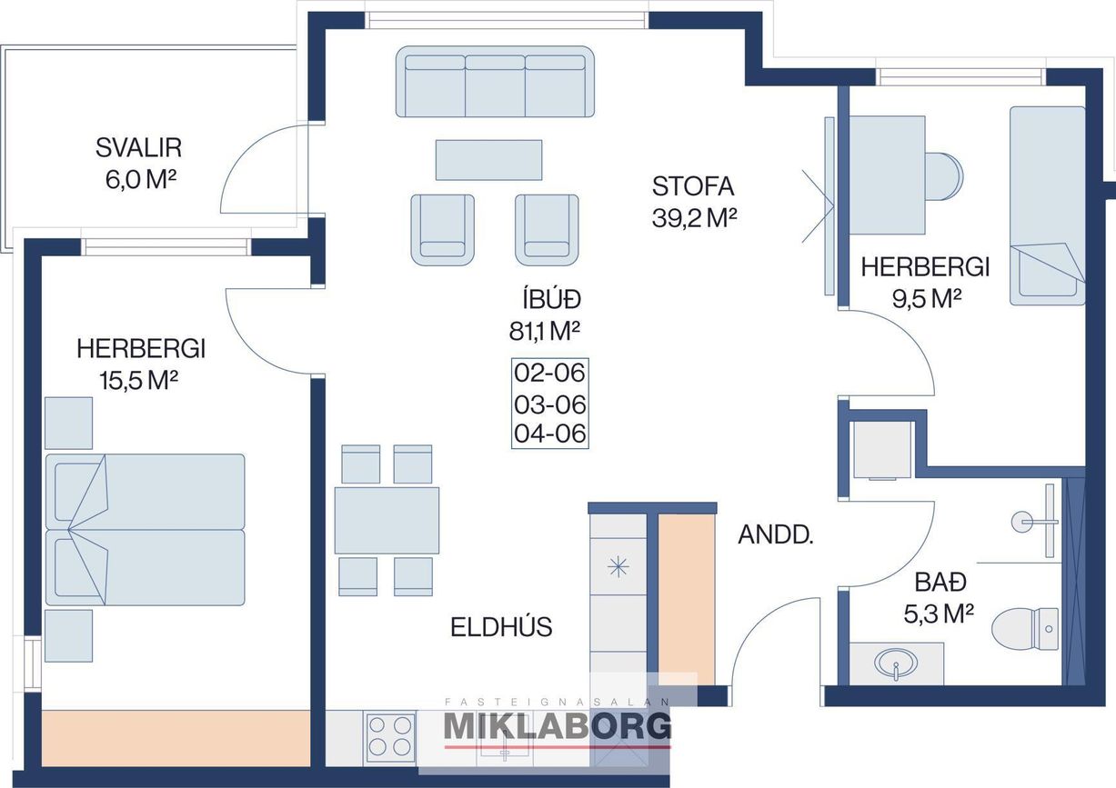 | 3 | 103,80 m² | 84.900.000 kr. 14. janúar 2024 | 84.900.000 kr. 3. apríl 2024 |