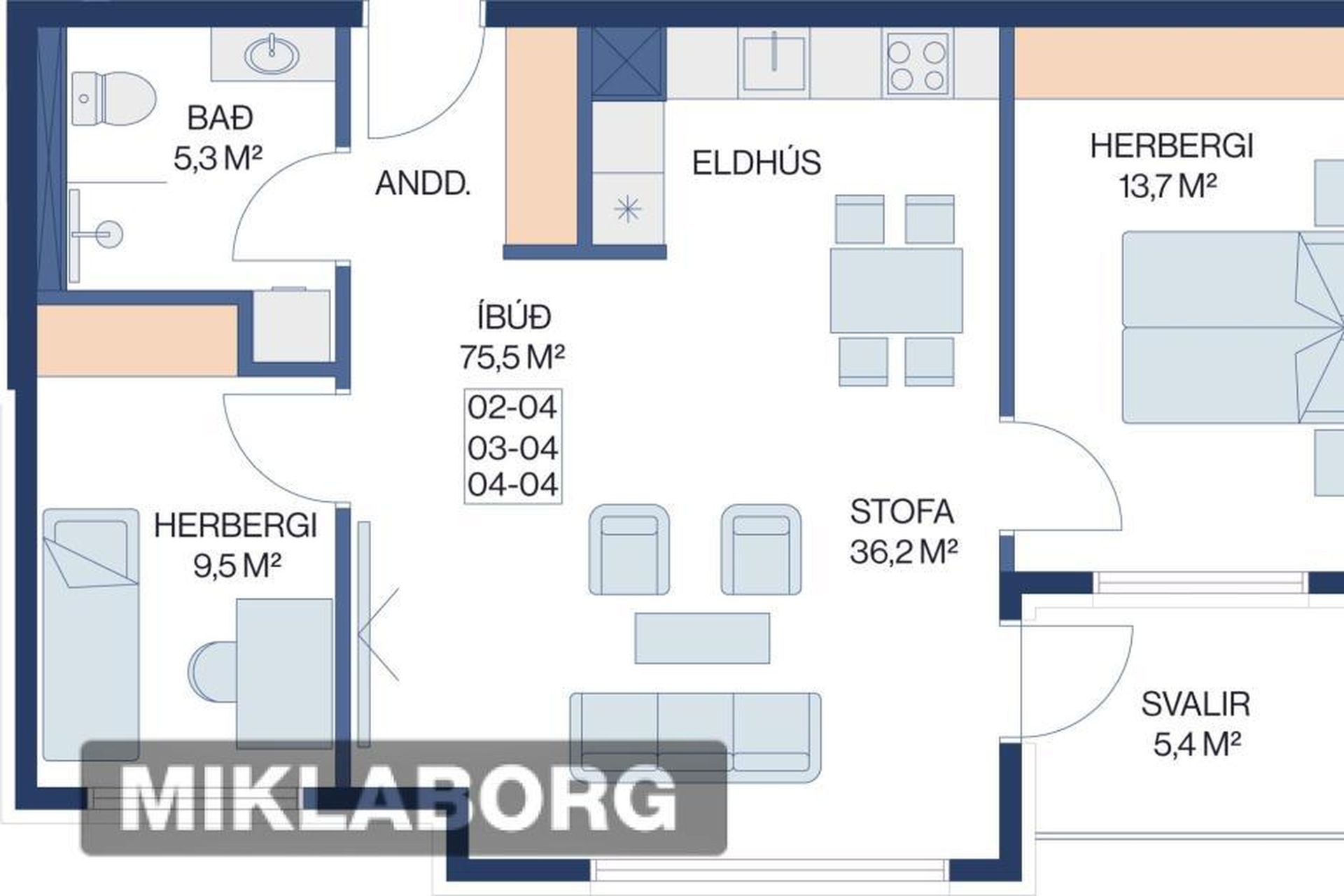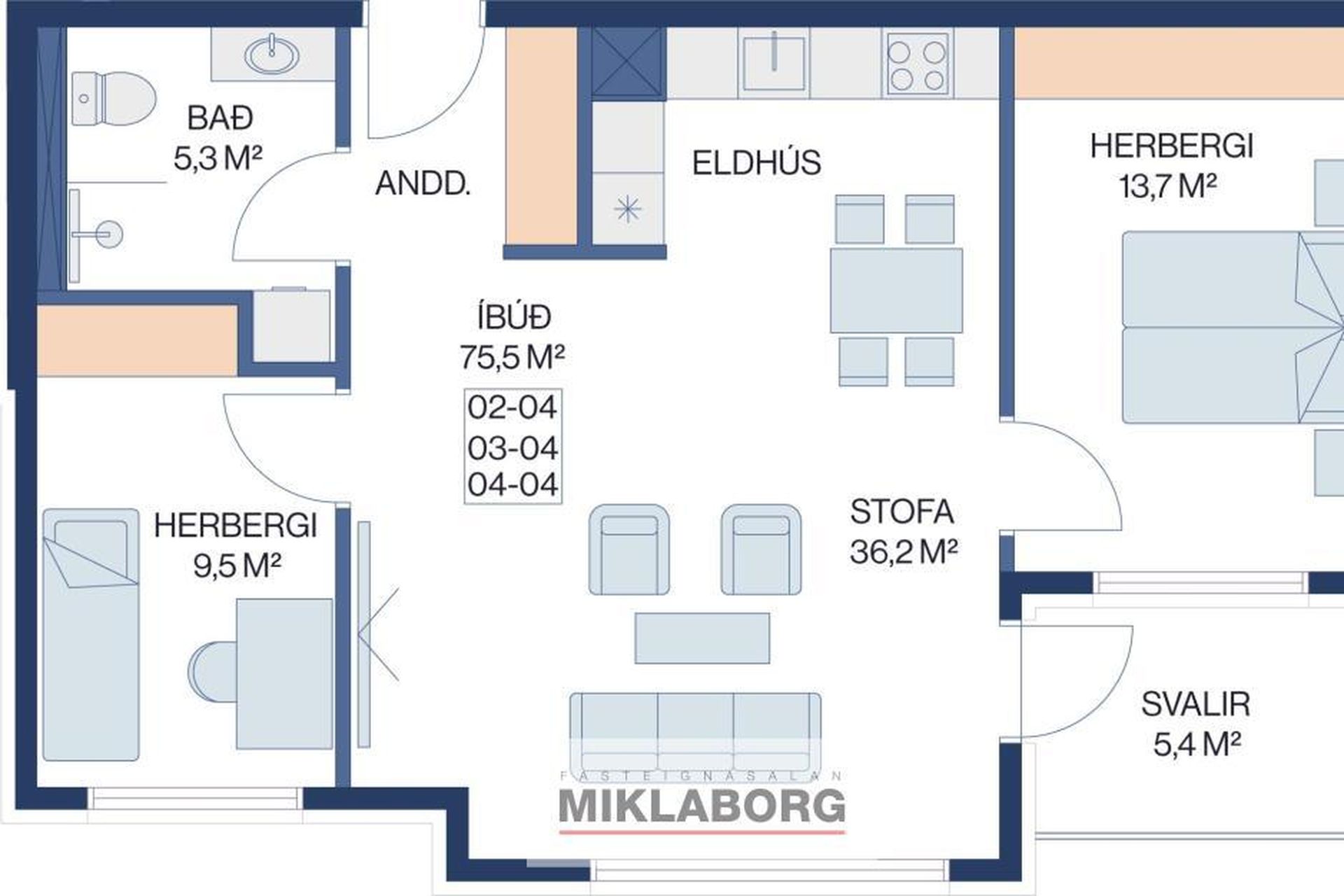 | 3 | 103,80 m² | 84.900.000 kr. 14. janúar 2024 | 84.900.000 kr. 3. apríl 2024 |