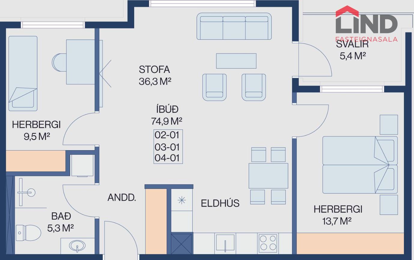 | 3 | 89,90 m² | 79.900.000 kr. 24. júní 2025 | 79.900.000 kr. 6. maí 2025 |