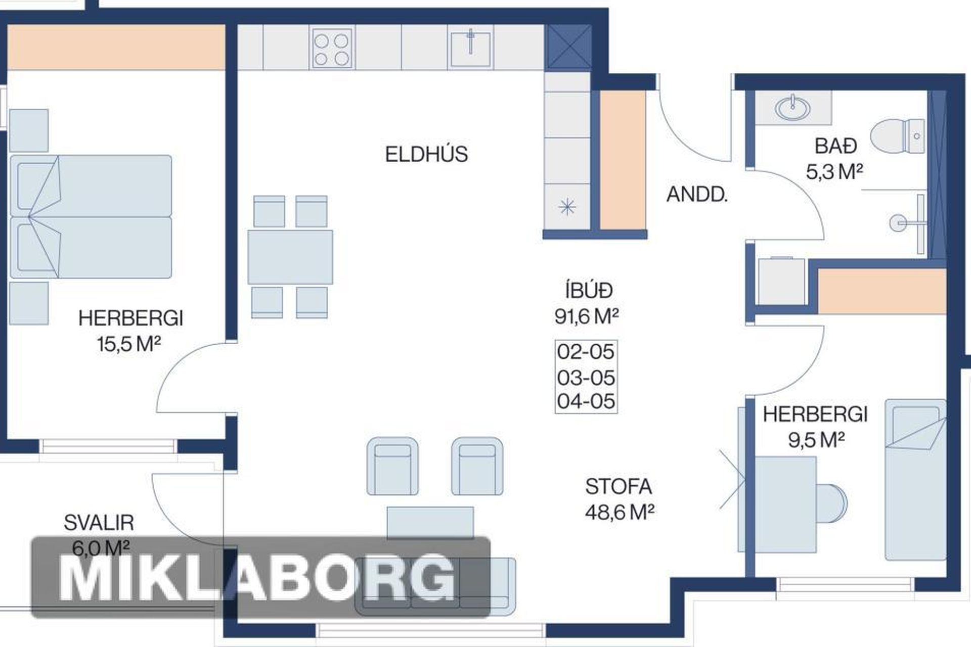 | 2 | 42,60 m² | 49.000.000 kr. 17. apríl 2024 | 48.900.000 kr. 6. maí 2024 |