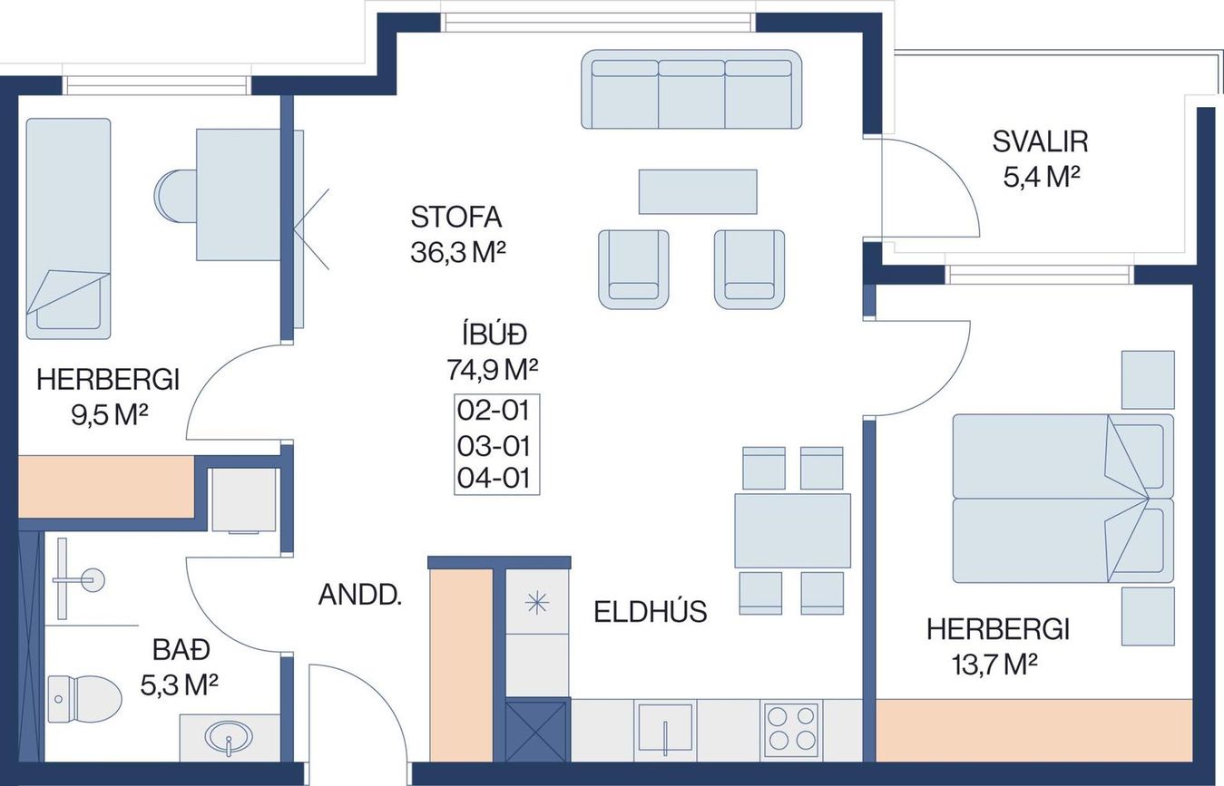 | 3 | 82,70 m² | 74.900.000 kr. 30. mars 2026 | - - |
