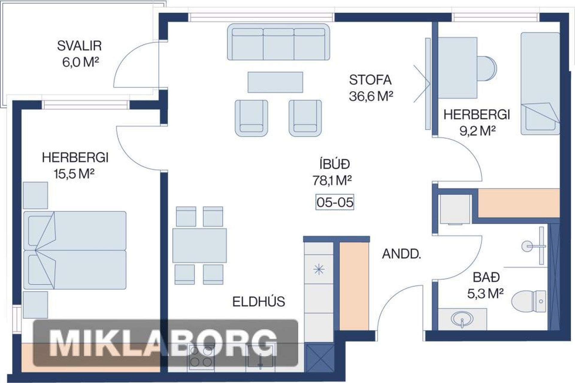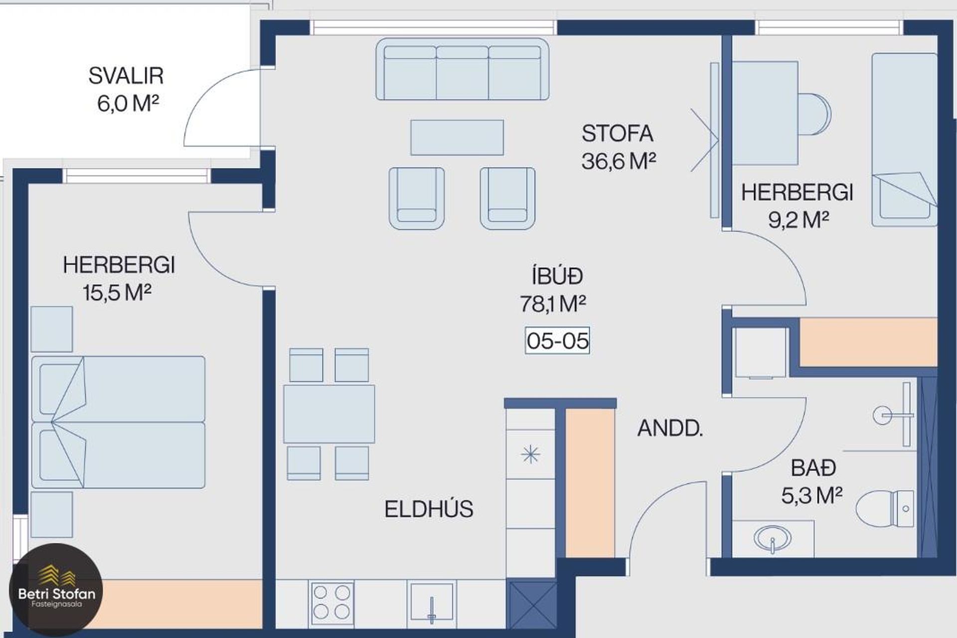 | 3 | 91,50 m² | 75.000.000 kr. 3. apríl 2026 | 78.900.000 kr. 14. maí 2025 |