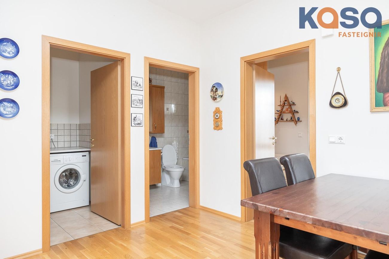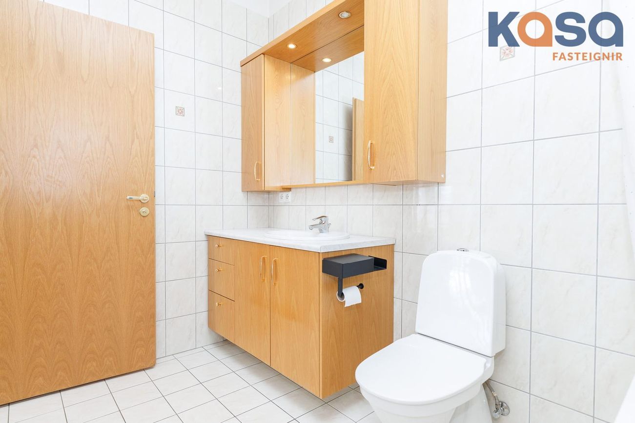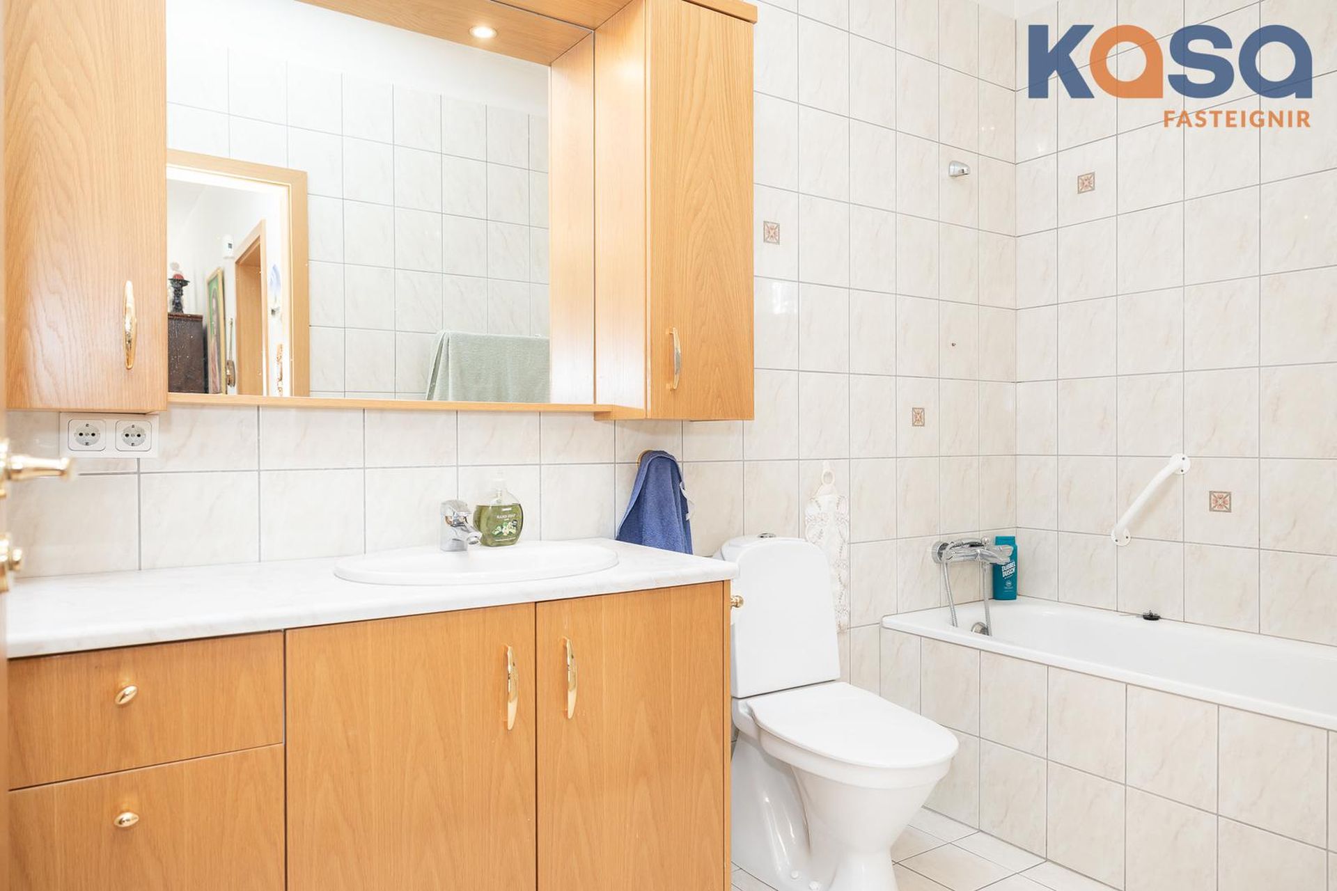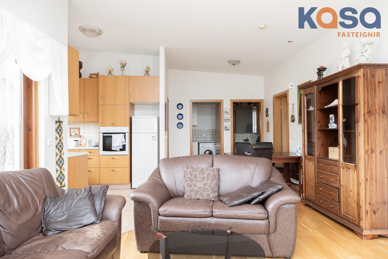 Eignin skiptist í forstofu, stofu, eldhús, baðherbergi, þvottahús, 2 svefnherbergi og rúmgóða geymslu. Geymslan er með glugga og gæti því nýst sem þriðja svefnherbergið/skrifstofa.Forstofa: Flísar á gólfi, rúmgóður fataskápur með skúffum.
