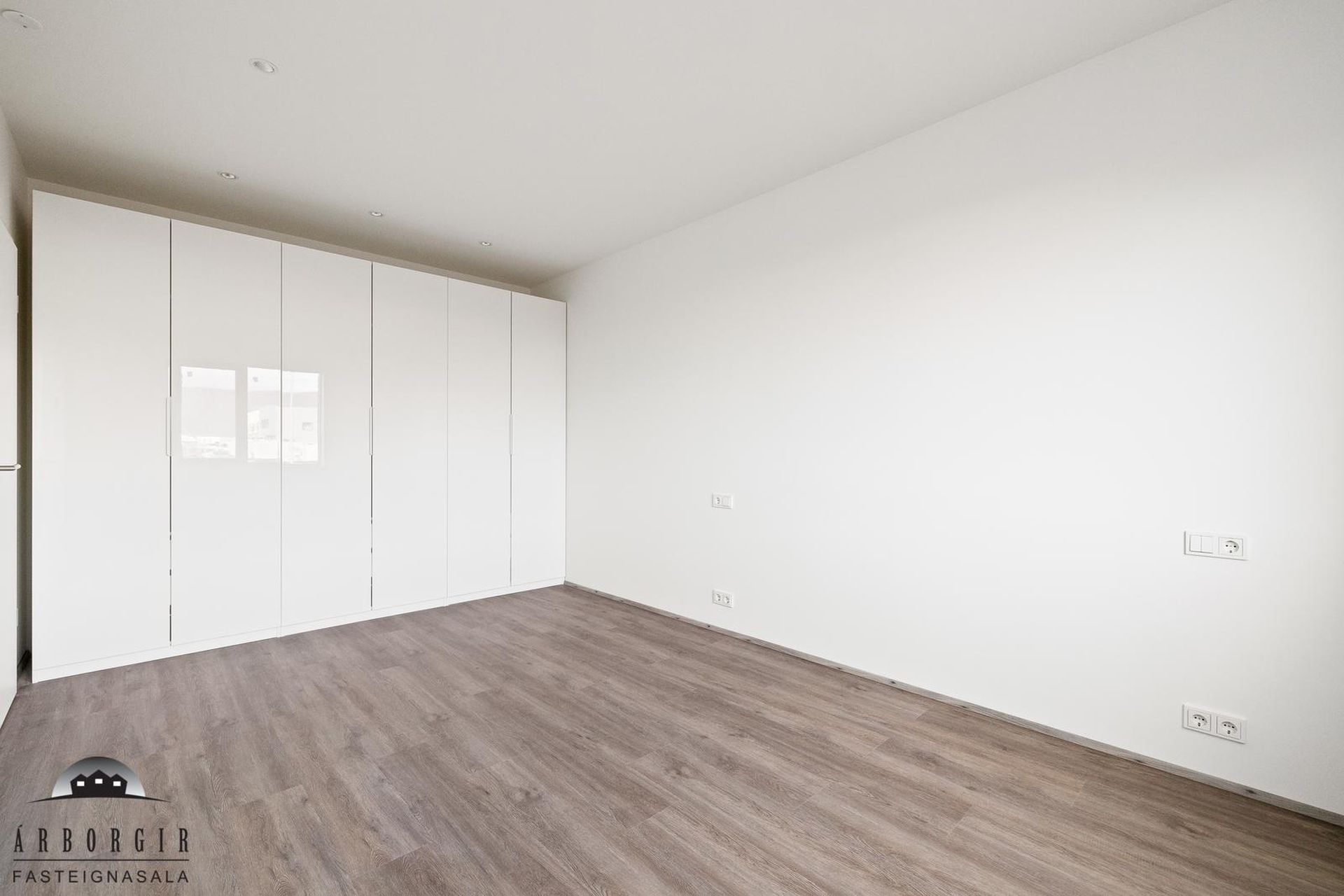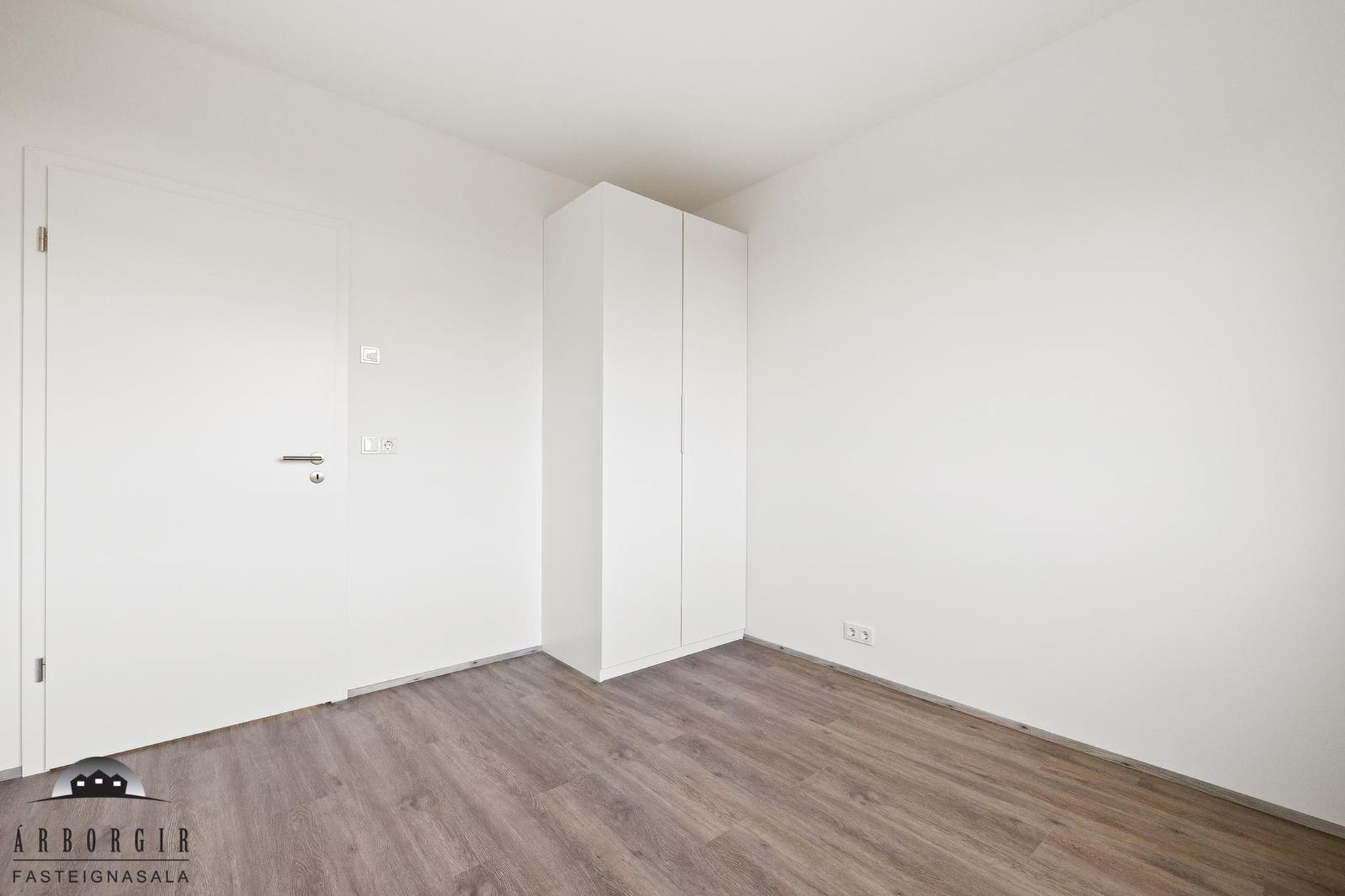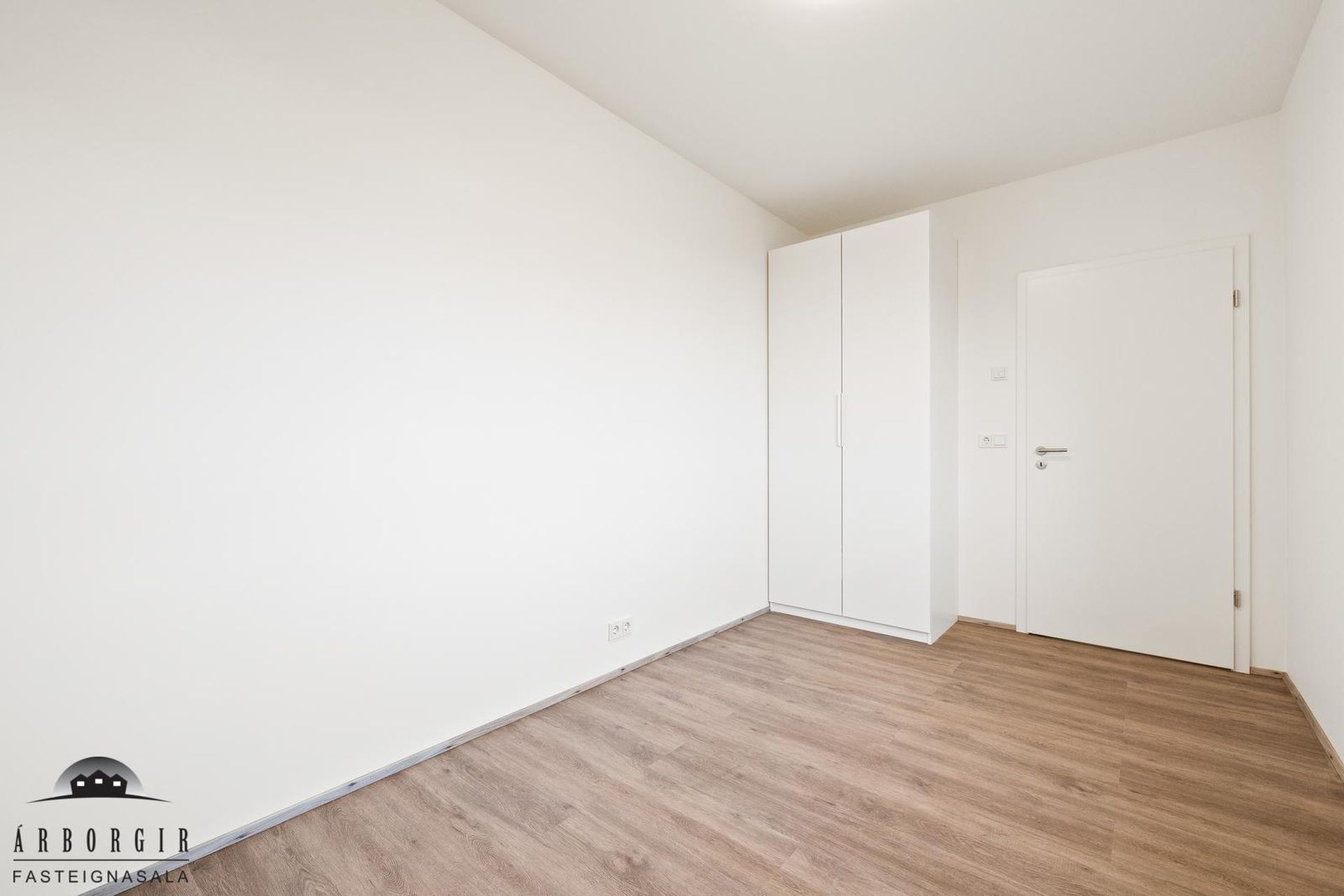 Þrjú svefnherbergi: Öll rúmgóð með fataskápum og vínilparket á gólfi.